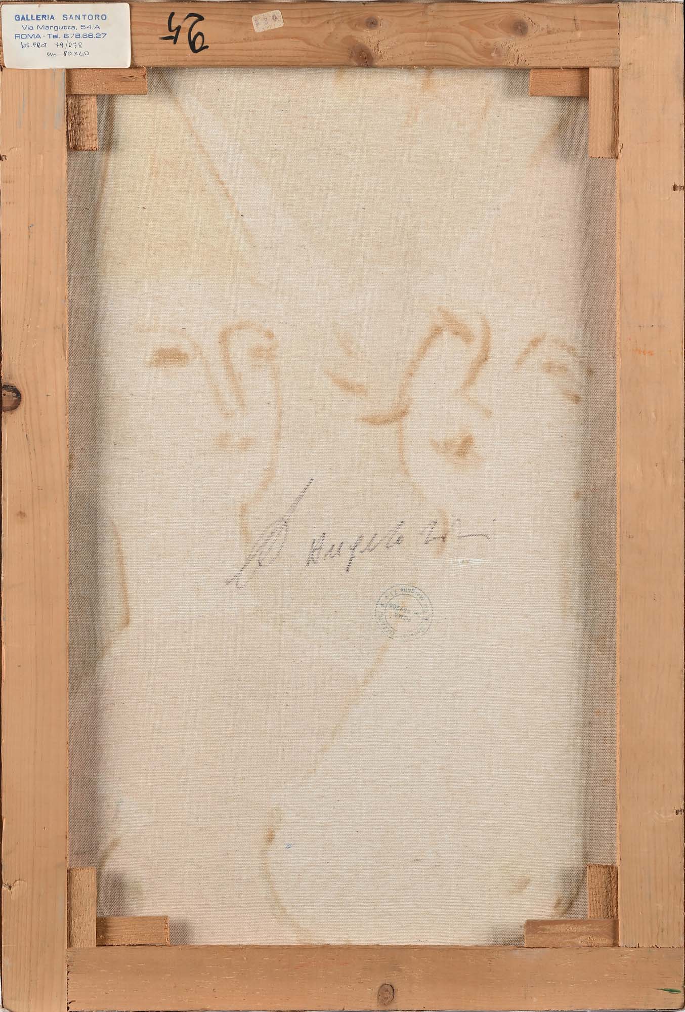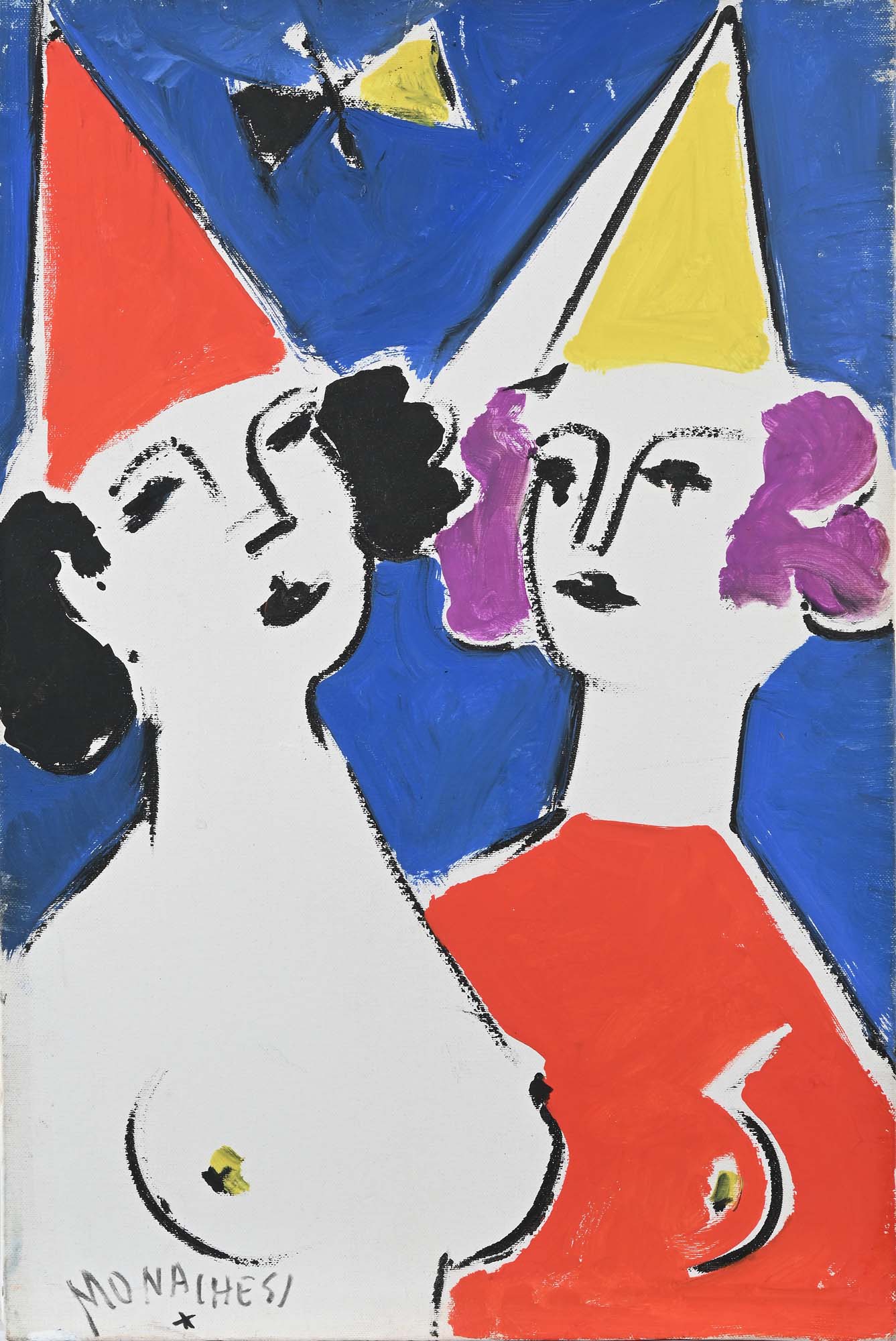 Sante Monachesi Due figure Olio su tela cm 60x40 Firmato in basso a sinistra "Monachesi"; al verso reca etichetta della Galleria Santori, Timbro e iscrizione