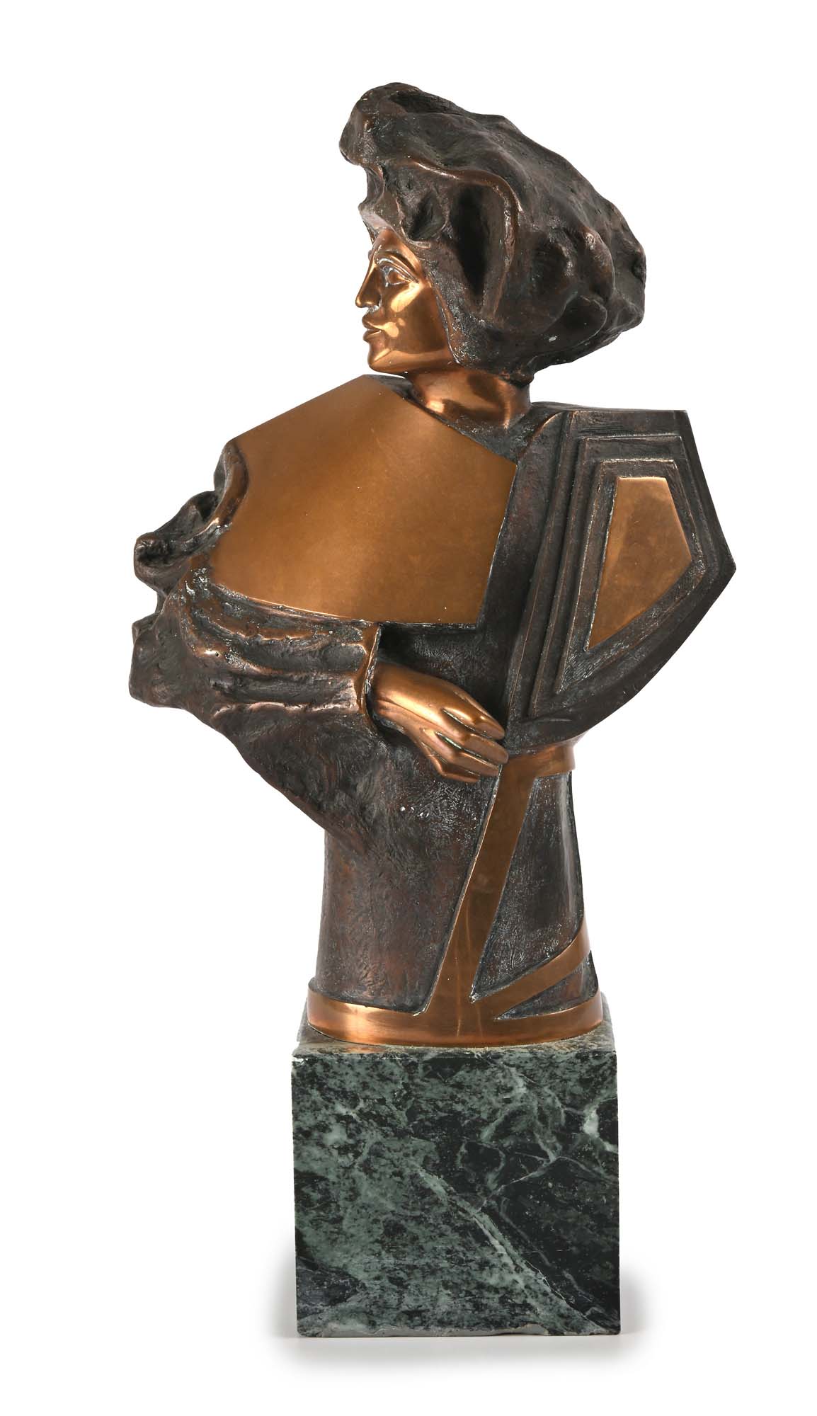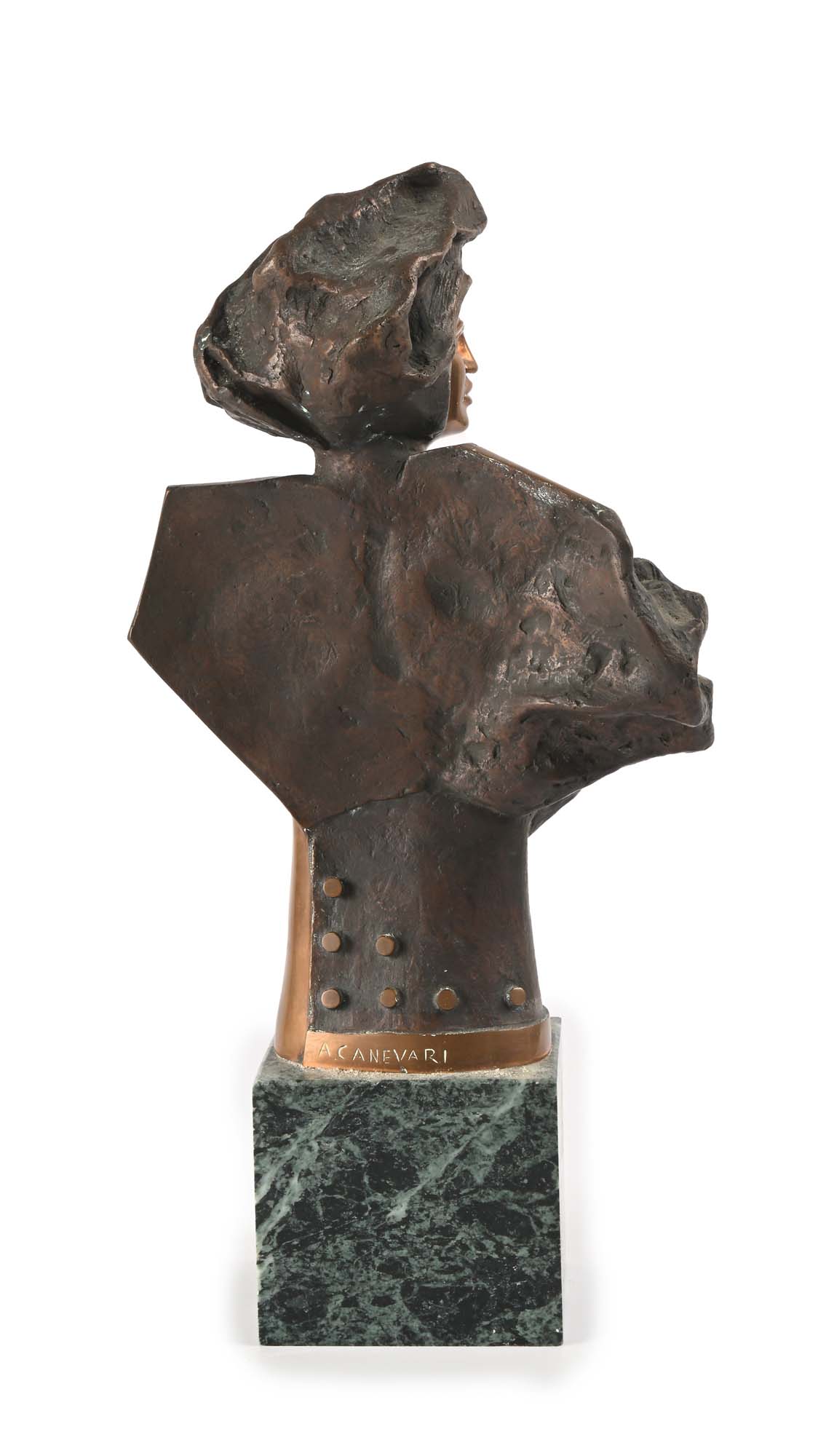 Angelo Canevari Ritratto di donna Scultura in bronzo su base in marmo nero cm h 33x22x10 - base in marmo cm h 10x11x10 Firma incisa "A. Canevari"