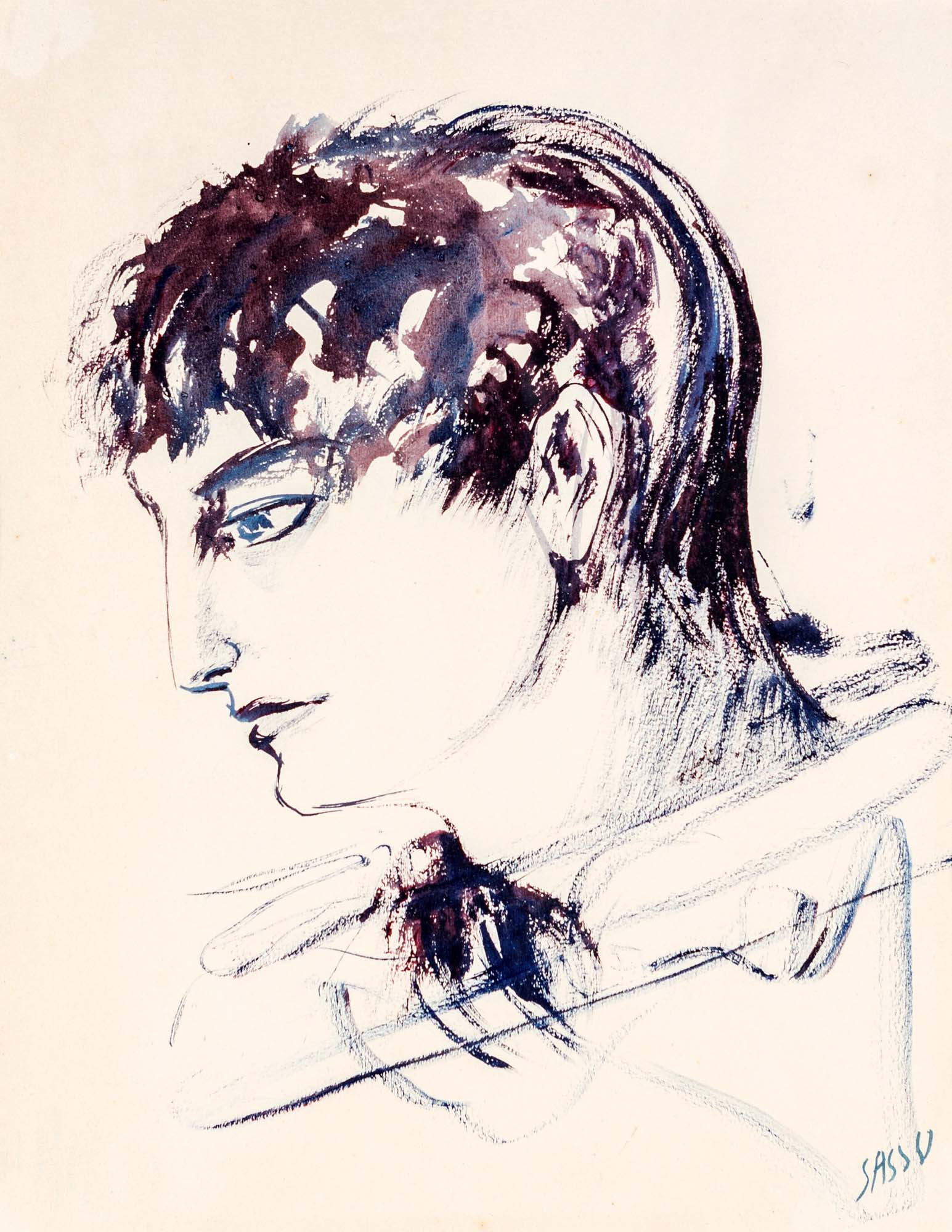 Aligi Sassu Volto di Ragazzo Acquarello e tempera su carta cm 42x32.7 - in...