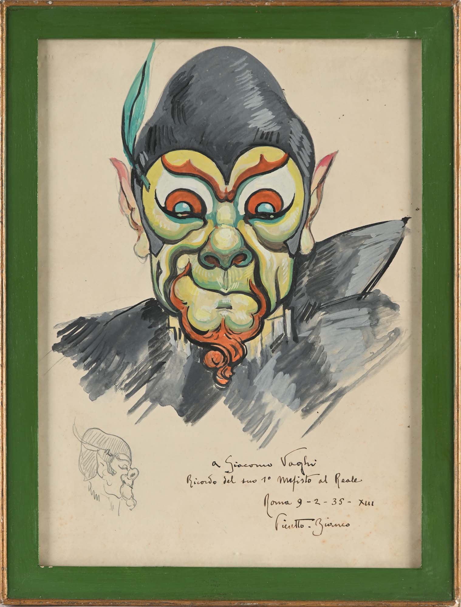 Pieretto Bianco Caricatura 1935 Matita e tempera su carta cm 32x23 - in cornice cm 36x28 Firma, data e dedica "A Giacomo Vaghi, Ricordo del suo 1° manifesto al Reale, Roma 9-2-35-XIII, Pieretto Bianco"