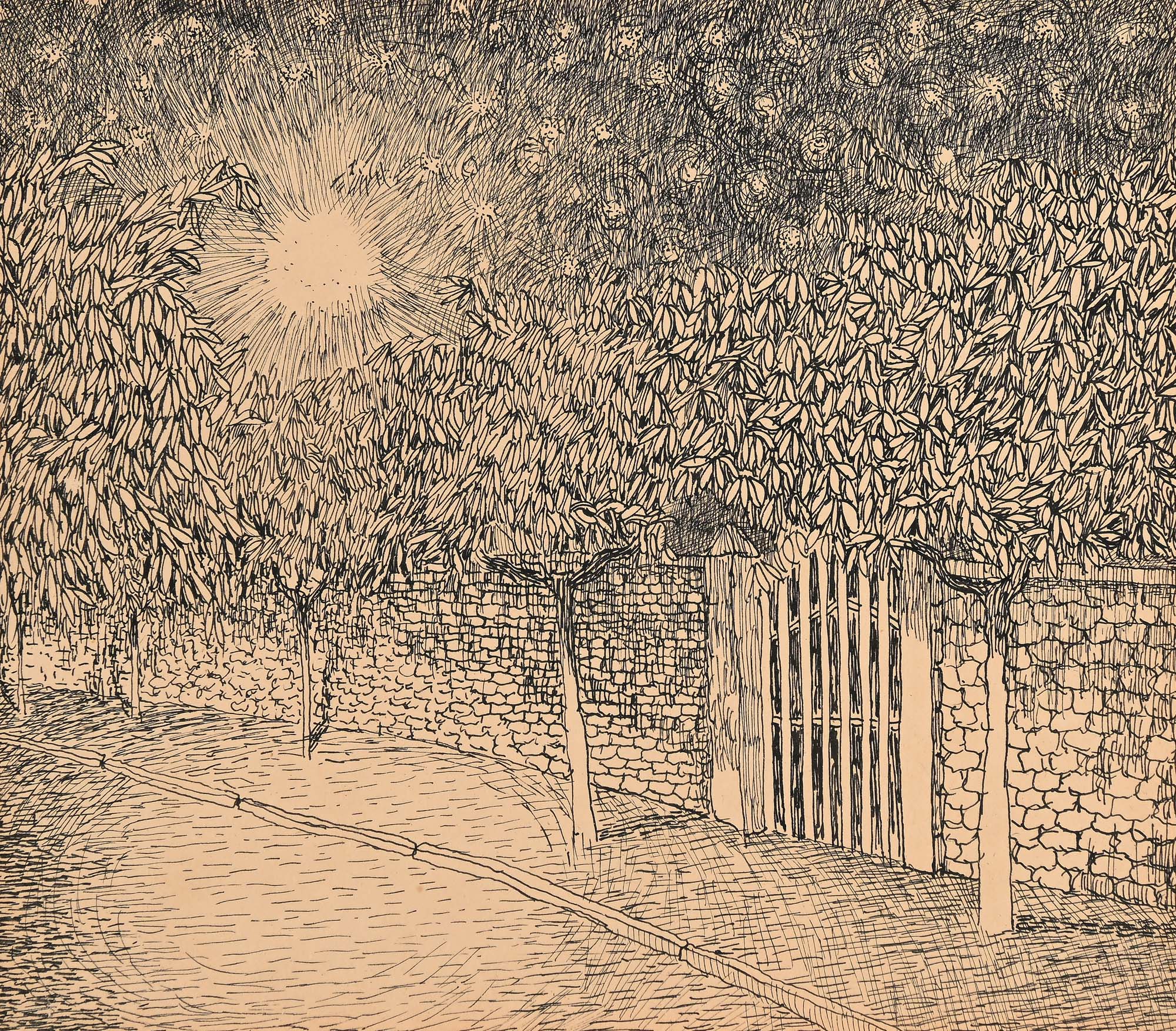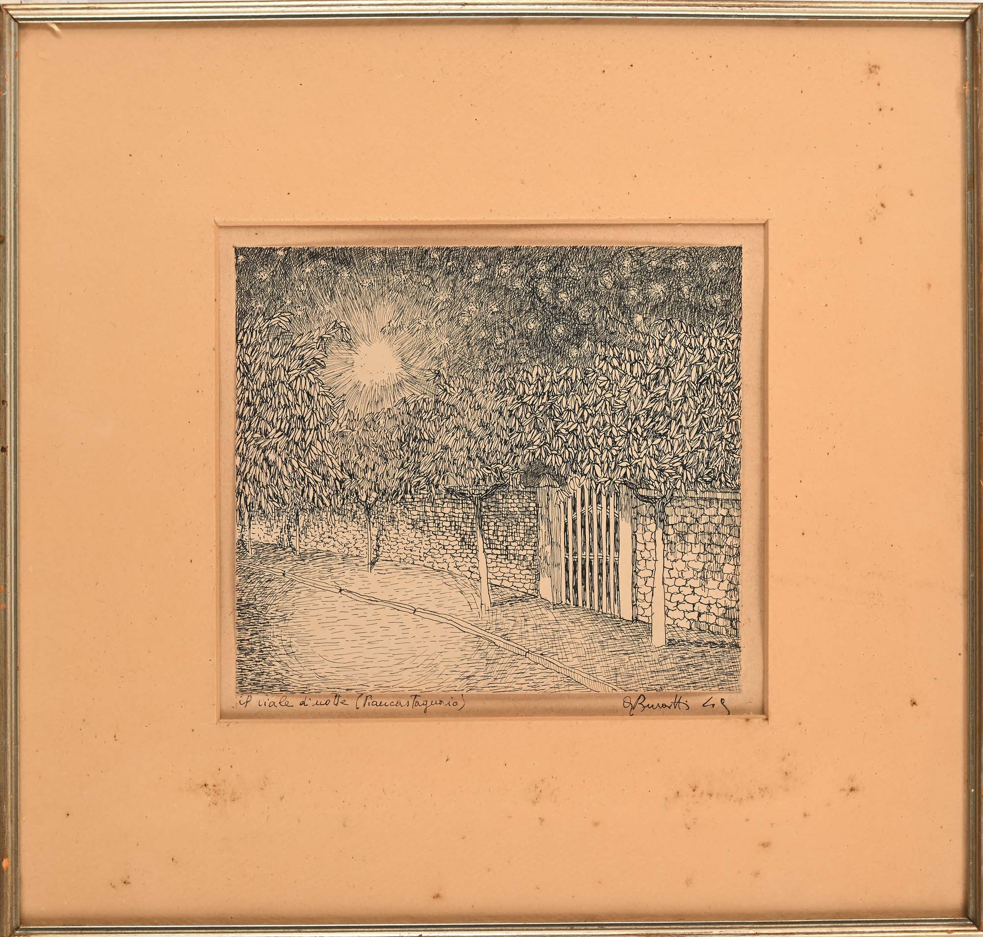 Armando Buratti Paesaggio 1959 Inchiostro su carta cm 17x24 - in cornice cm 32x40 Firma e data sul fronte "Buratti '59"