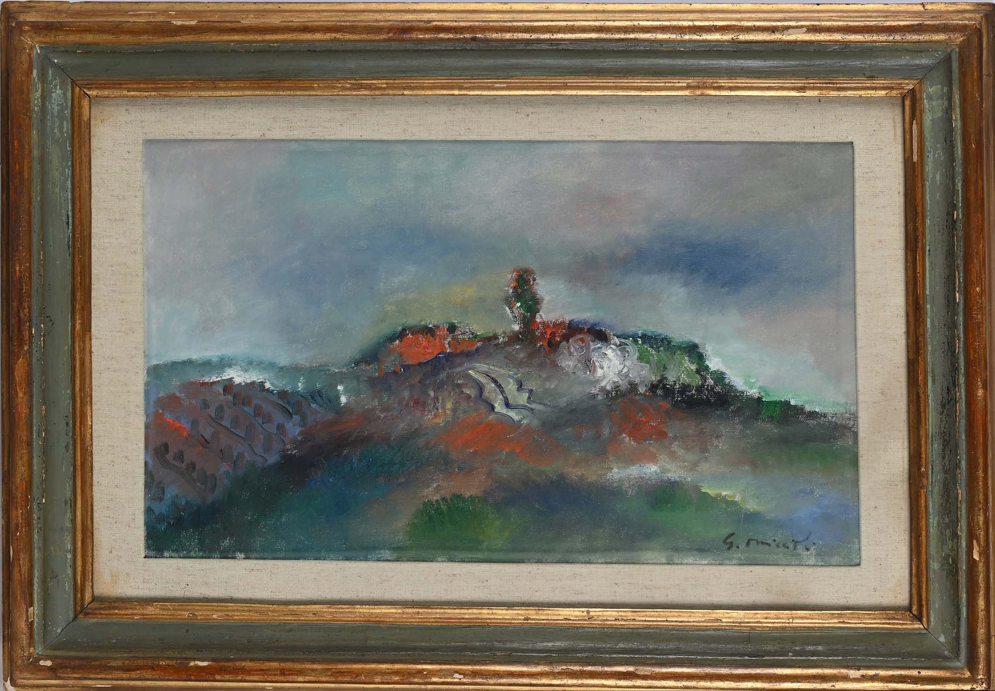 Giovanni Omiccioli Paesaggio Olio su cartone telato cm 30x49,5 - con cornice cm 48,5x69 Firma in basso a destra "G. Omiccioli". Al verso rega autentica di pugno dell'autore