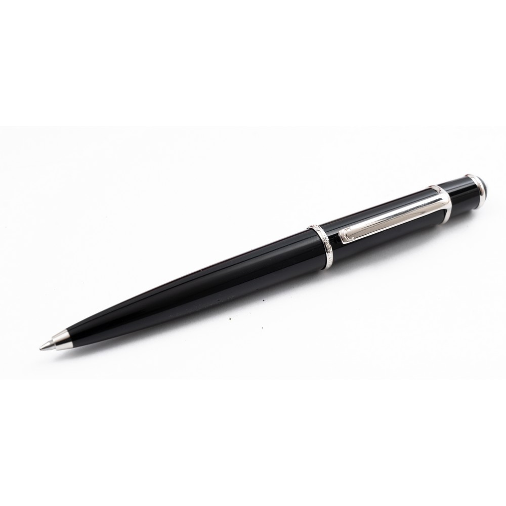 PENNA CARTIER DIABOLO a sfera in resina nera lucida, cappuccio sormontato da pietra cabochon blu, custodia originale.