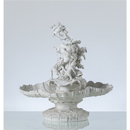Gruppo scultoreo in biscuit raffigurante "Ninfee acquatiche". Marchio di produzione sotto la base (difetti).