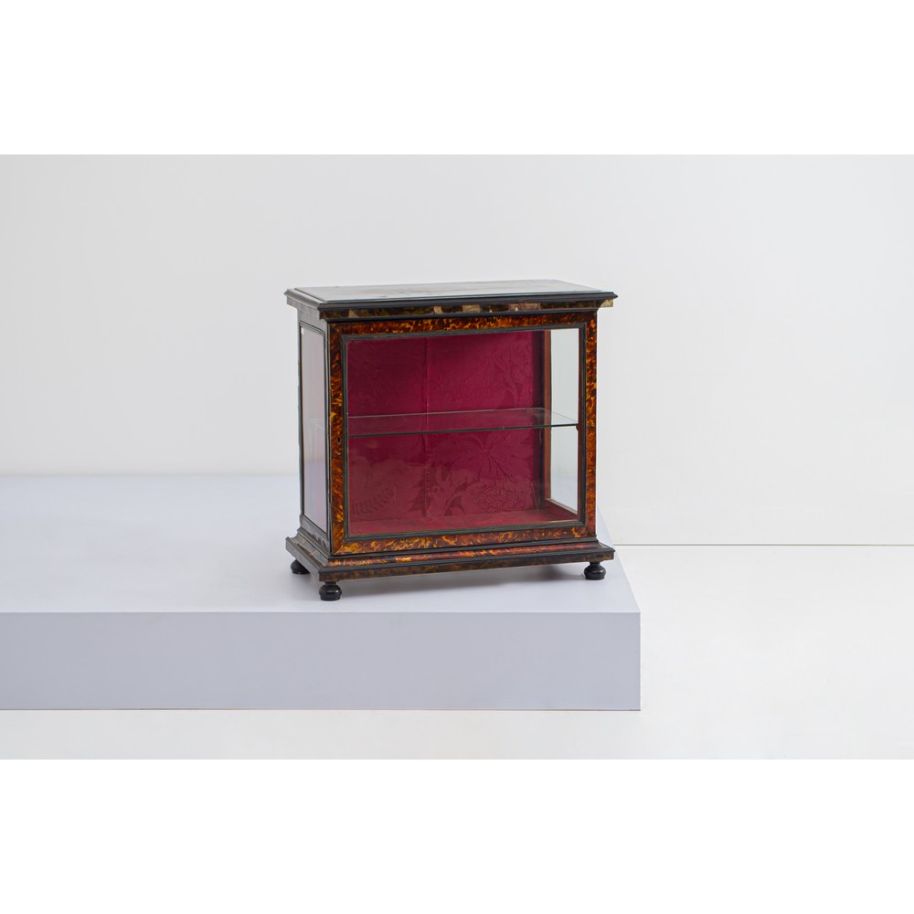 Vetrina/espositore in legno ebanizzato con finiture in tartaruga. L'opera è corredata di certificato Cites.