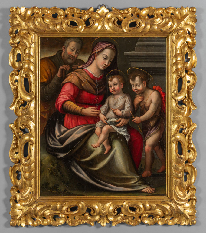 'Sacra Famiglia con San Giovannino' olio su tavola cm. 113x130