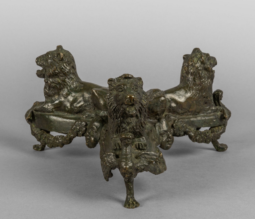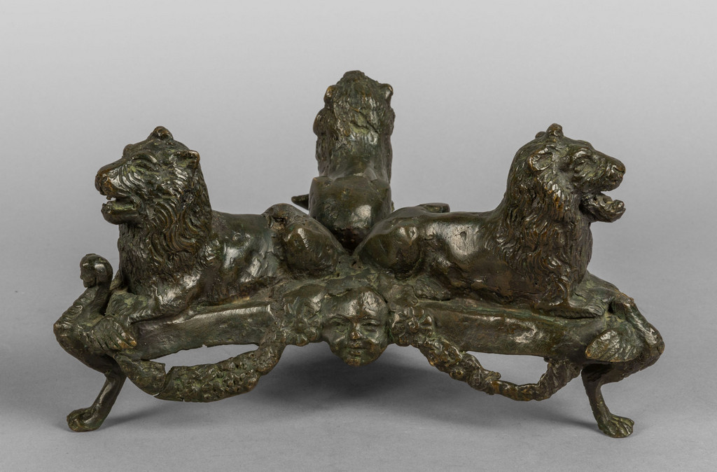 Base in bronzo a patina scura raffigurante tre leoni sec.XVII