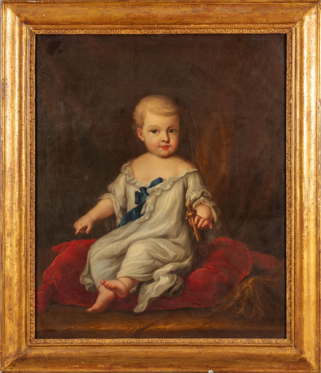 Scuola francese inizi sec.XIX 'Ritratto di bambino su cuscino rosso' olio