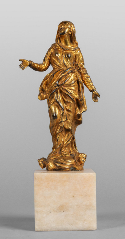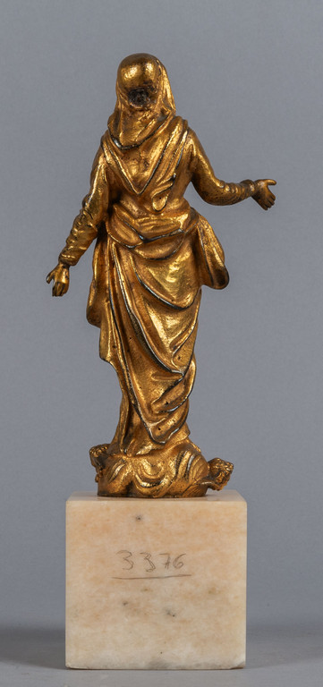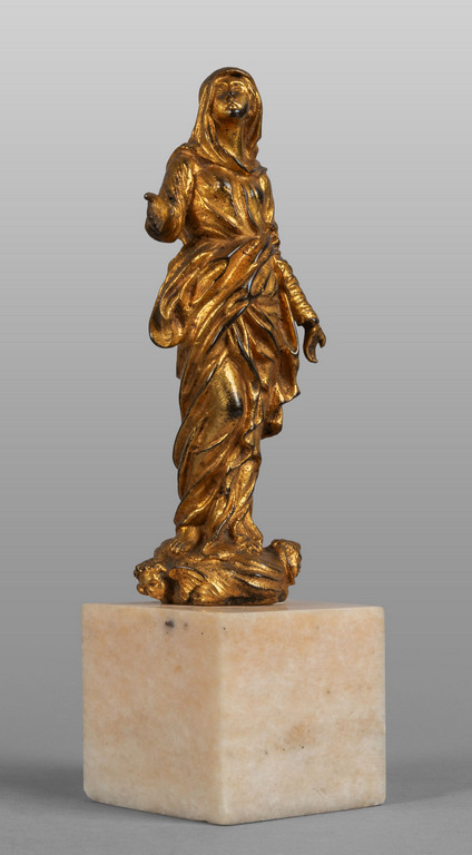 Madonna scultura in bronzo dorato su base in marmo non coeva Roma sec.XVII