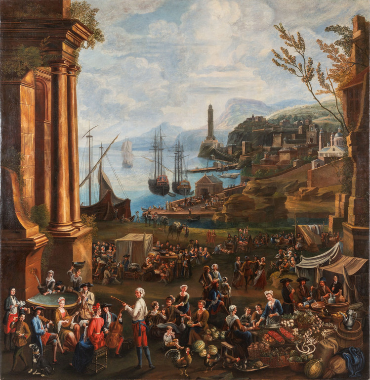 'Veduta fantastica della città di Genova' olio f.to in b.a s. e d.to 1710