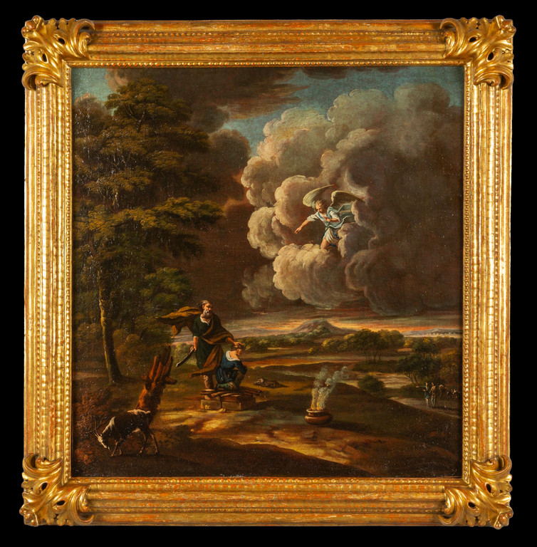Scuola genovese sec.XVII 'Paesaggio con sacrificio di Isacco' olio