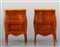 Coppia di comodini a due cassetti movimentati sul fronte e sui fianchi lastronati in legno di rosa e filettati in palissandro con medaglioni ripetuti al centro dei cassetti ed al centro dei due fianchi piani in breccia gialla Napoli I metà sec.XVIII