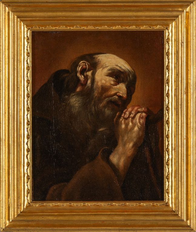 Scuola napoletana sec. XVIII (Giuseppe Maria Crespi?) 'San Nicola Abate' olio su tela