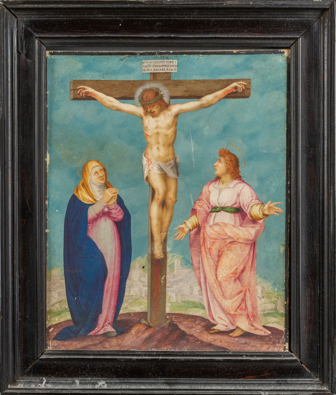 'Crocifissione' tempera s.ta nel retro BC e d.ta 1607