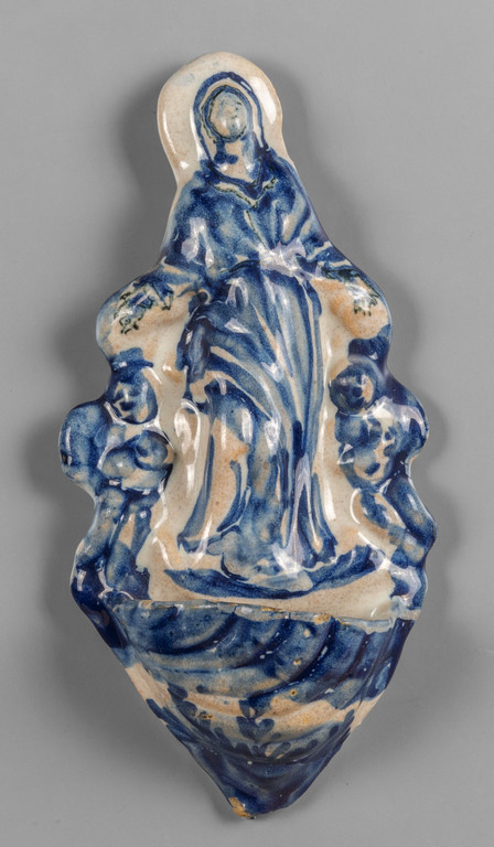 Acquasantiera in ceramica decorazione bianca e blu Savona sec.XVIII