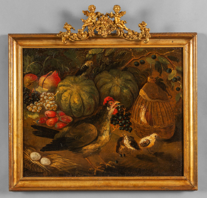 'Natura morta con frutta e gallina' olio sec.XVIII