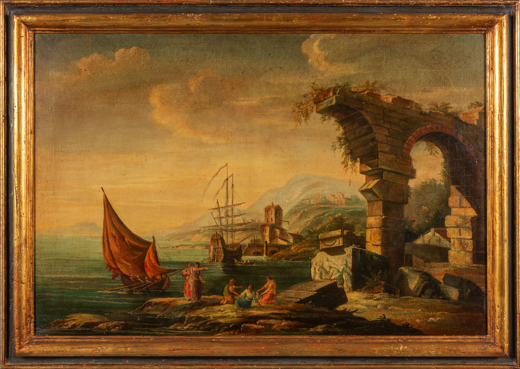 Previous Lot 0153 Next Aste Boetto - Via Mura dello Zerbino 10R, 16122 Genova ASTA DI ANTIQUARIATO E DIPINTI SEC.XIX Asta di Antiquariato e dipinti sec.XIX Tuesday 10 December 2024 hours 15:00 (UTC +01:00) DIPINTO 'Marina con figure' olio sec.XIXcm. 120x76