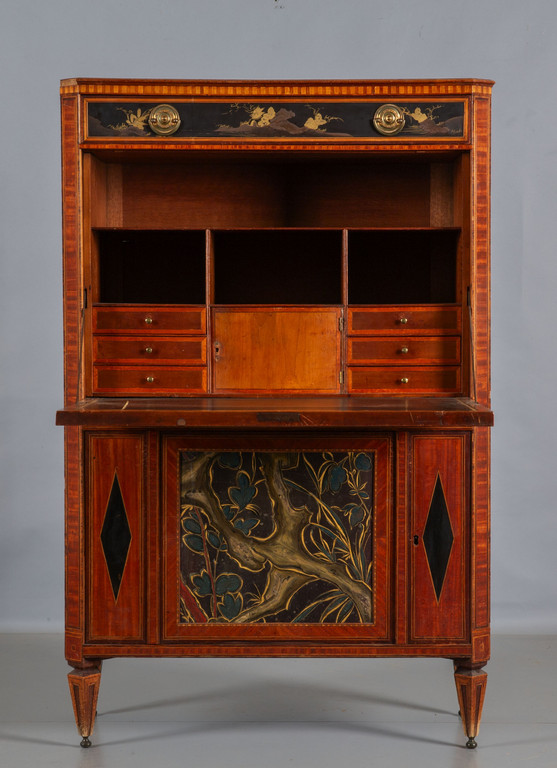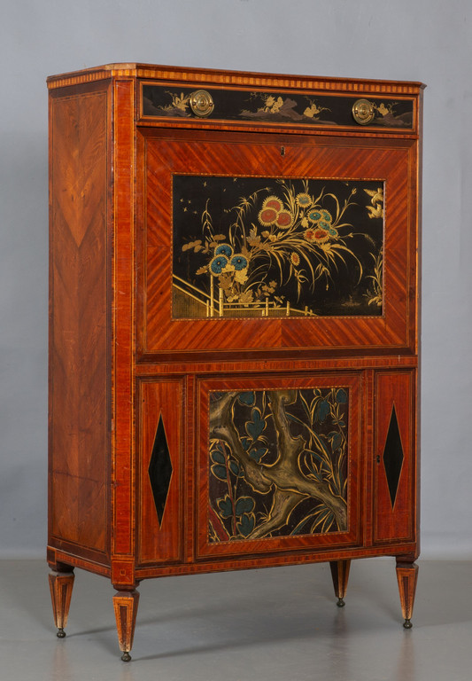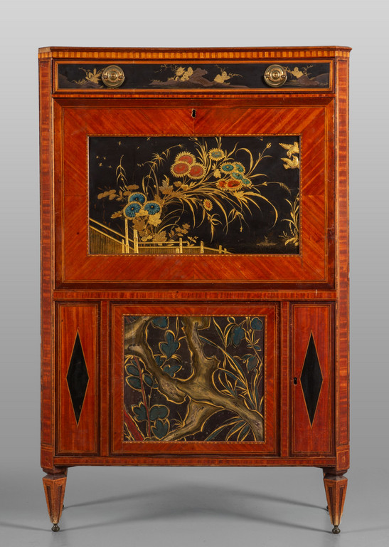 Secretaire Luigi XVI finemente lastronato in legno di rosa con applicazioni in lacca giapponese Olanda sec.XVIII