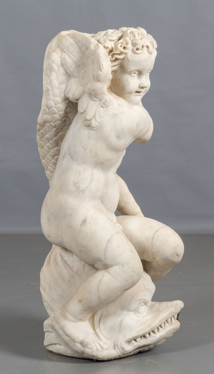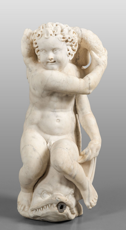 Putto a cavallo di un delfino scultura manierista in marmo (nell'ambito di Giovanni Angelo Montorsoli) III quarto sec.XVI