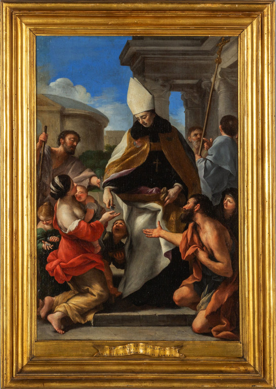 Attr. a Giovanni Francesco Romanelli sec.XVII 'L'elemosina di San Tommaso Villanova' olio su tela