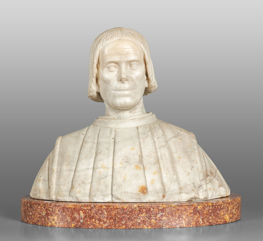 Macchiavelli scultura in marmo poggiante su base in broccatello Toscana sec.XVI