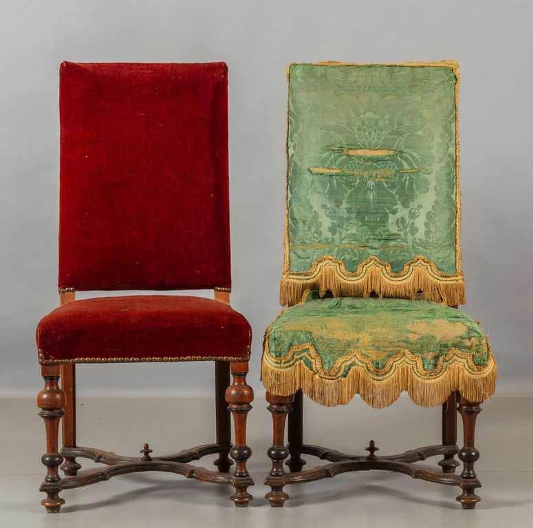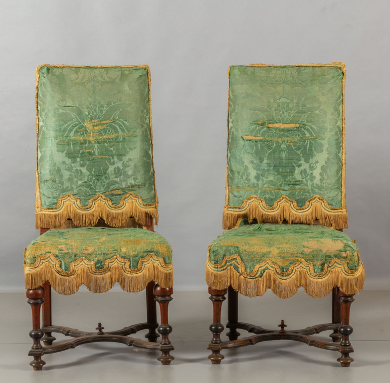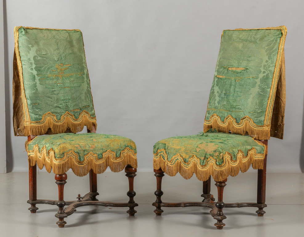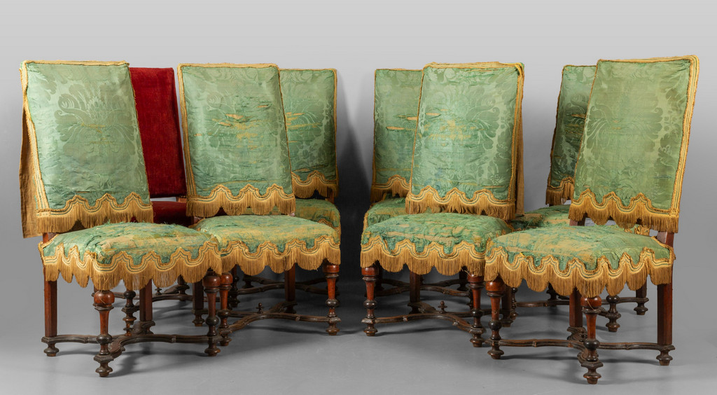 Otto sedie a rocchetto gambe a bottiglia unite da traversa Piemonte inizi sec.XVIII