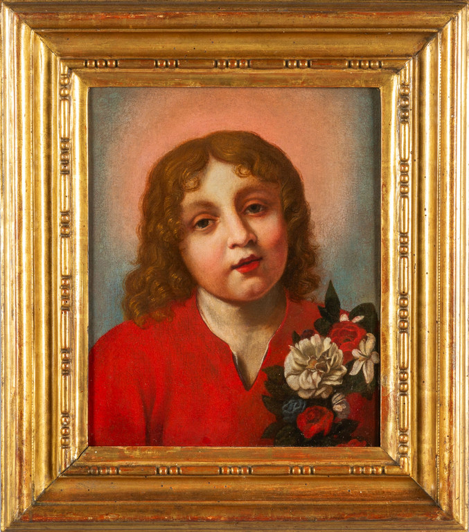 Attr.a Onorio Marinari (Firenze 1627-1716) 'Gesù Bambino con mazzo di fiori' olio