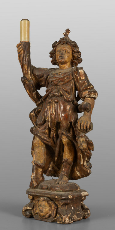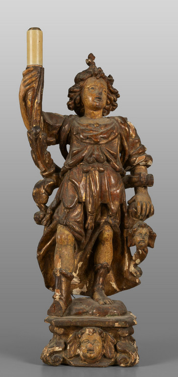 Angioletto reggitorcera in legno intagliato laccato e dorato Toscana sec.XVIII
