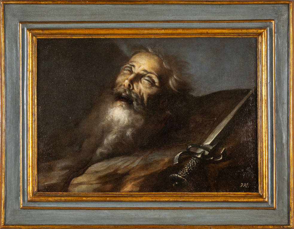 Attr. a Sebastian de Llanos Valdès (circa 1605-1677) 'Testa di Santo Martire' (Giovanni Battista o Paolo?) olio su tela
