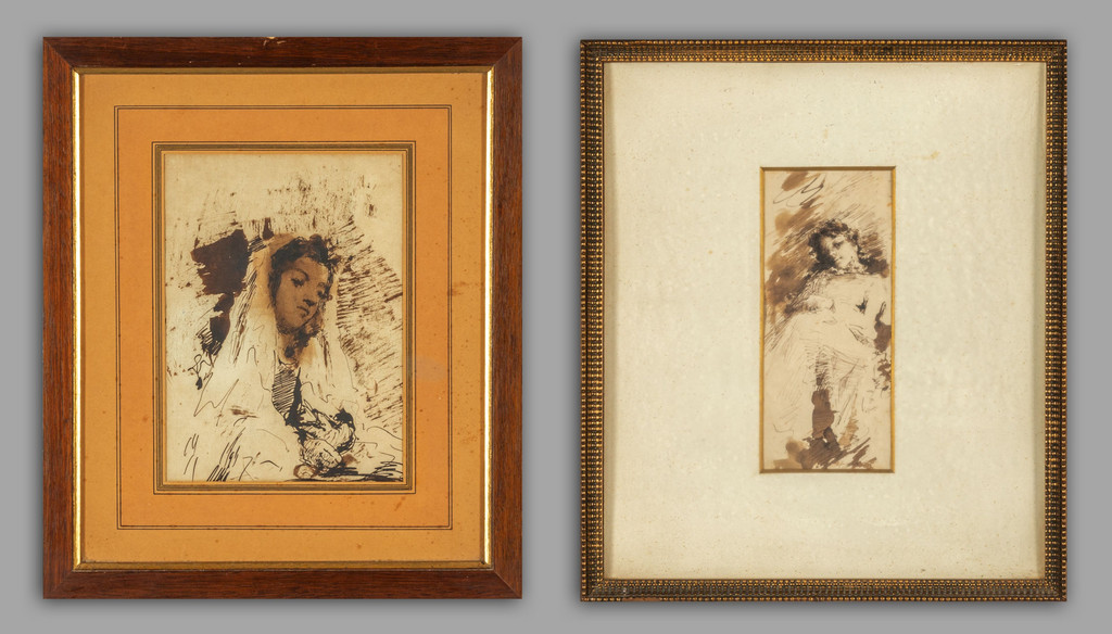 due disegni a penna ed acquarello cm.9x21 e 16x22
