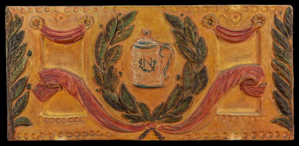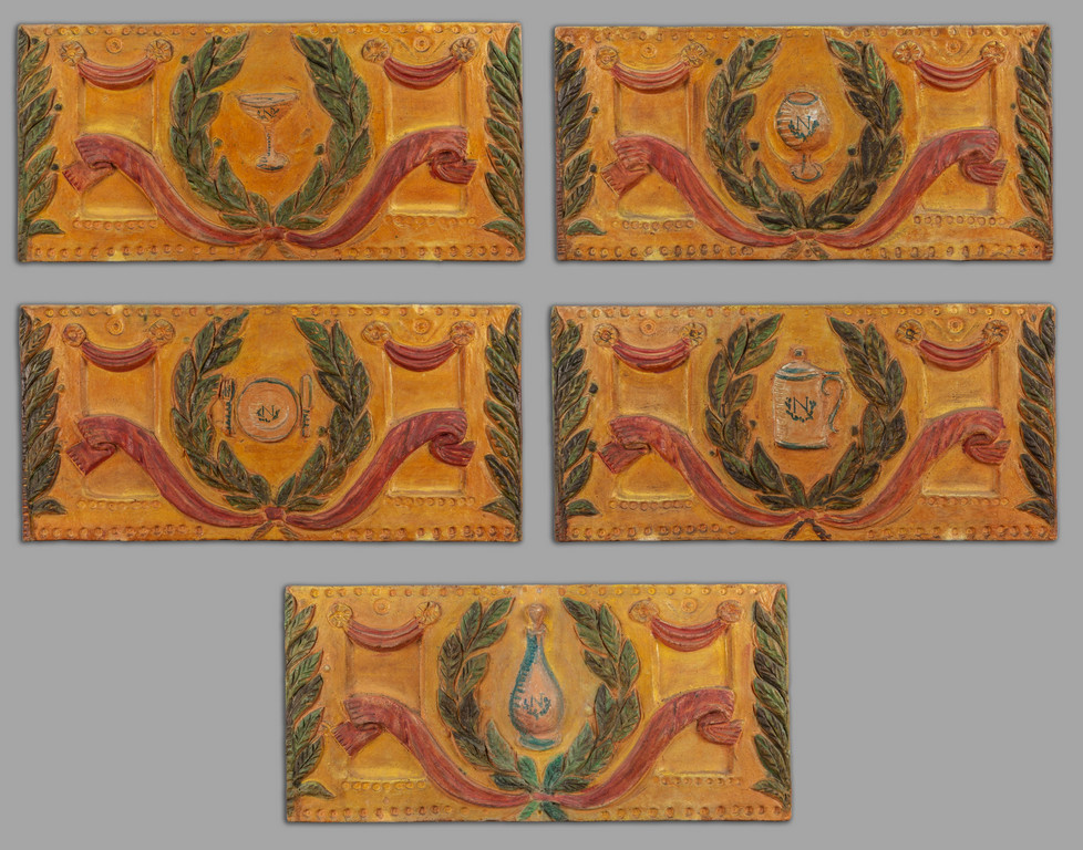 Cinque pannelli in terracotta a soggetti napoleonici con ghirlande eseguiti per il Bar Napoleon di Ceriale 1959 circa