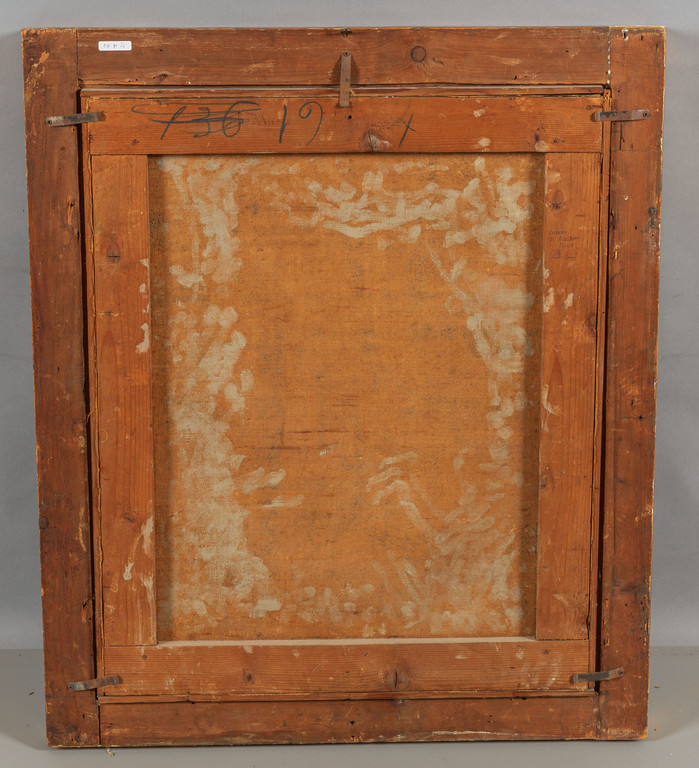 olio cornice in legno intagliato e dorato coeva