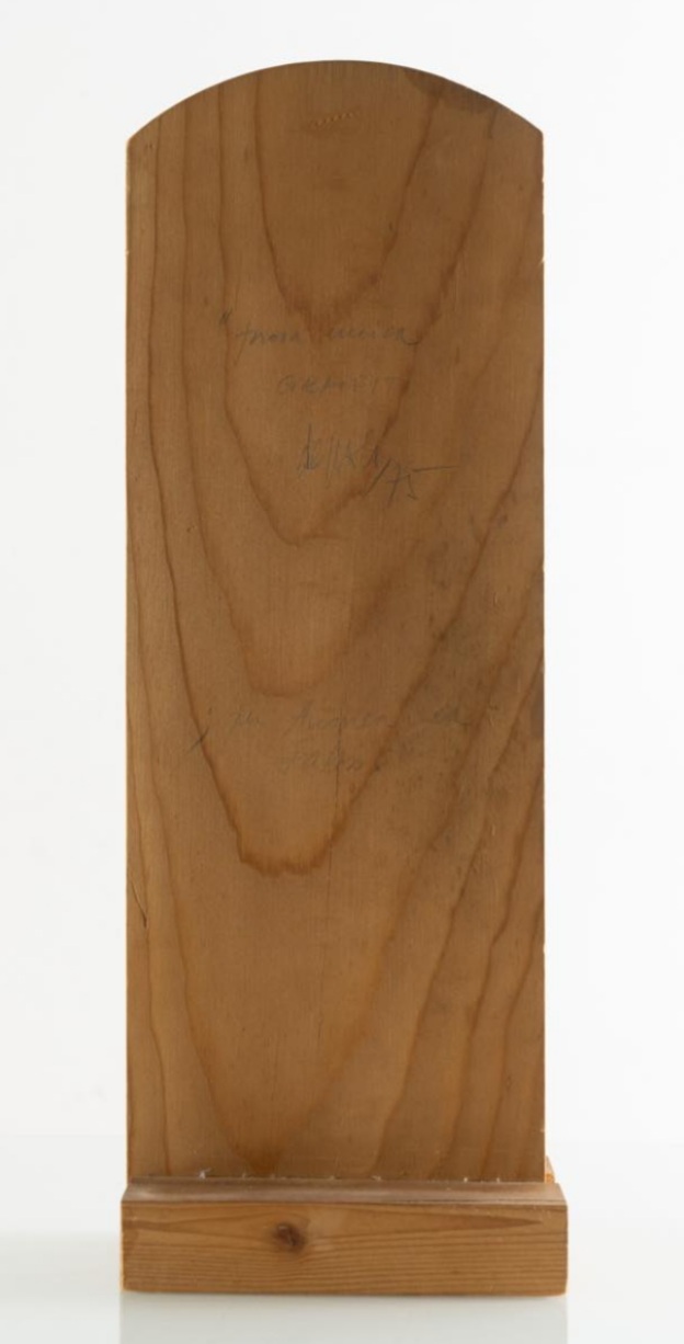 Fabio de Poli (Genova 1947). New York 1909, Il viaggio di Geronimo/Graffiti, 1975. Tecnica mista su legno prova unica. Titolata in basso. Al verso tecnica, titolato, firamto, datato. Presente dedica. Cm. 41x15x10.