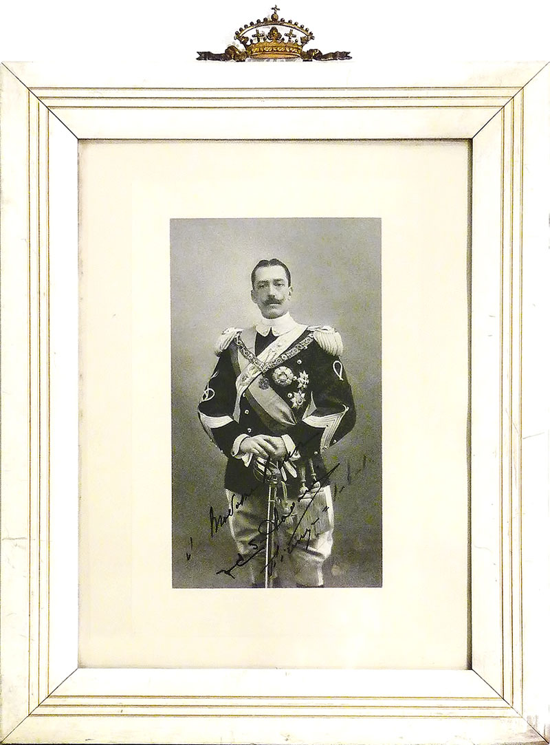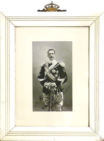 RITRATTO DI AMEDEO FERDINANDO MARIA DI SAVOIA - SAVOIA PORTRAIT stampa all'albumina - albumen print, reca dedica firmata e datata Firenze 1.8.1912 - with signed and dated dedication montata su cartone - cardboard mounted, in cornice coeva coronata - in same period crowned frame cm 13x23,3, 5.12x9.18 inches