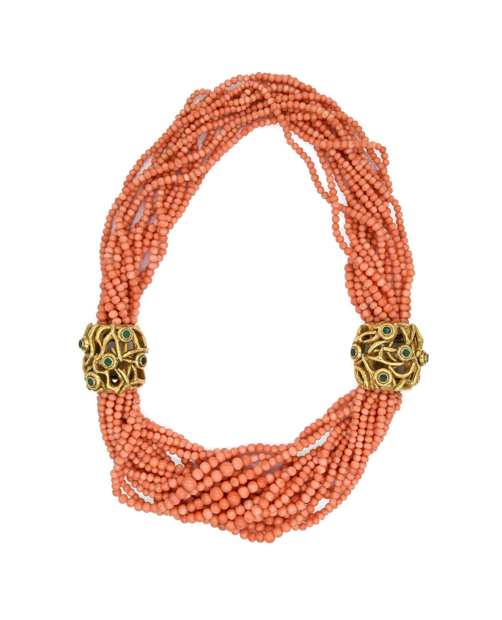 Cannilla per Masenza, collana in corallo, oro e smeraldi Oro giallo 750/00....