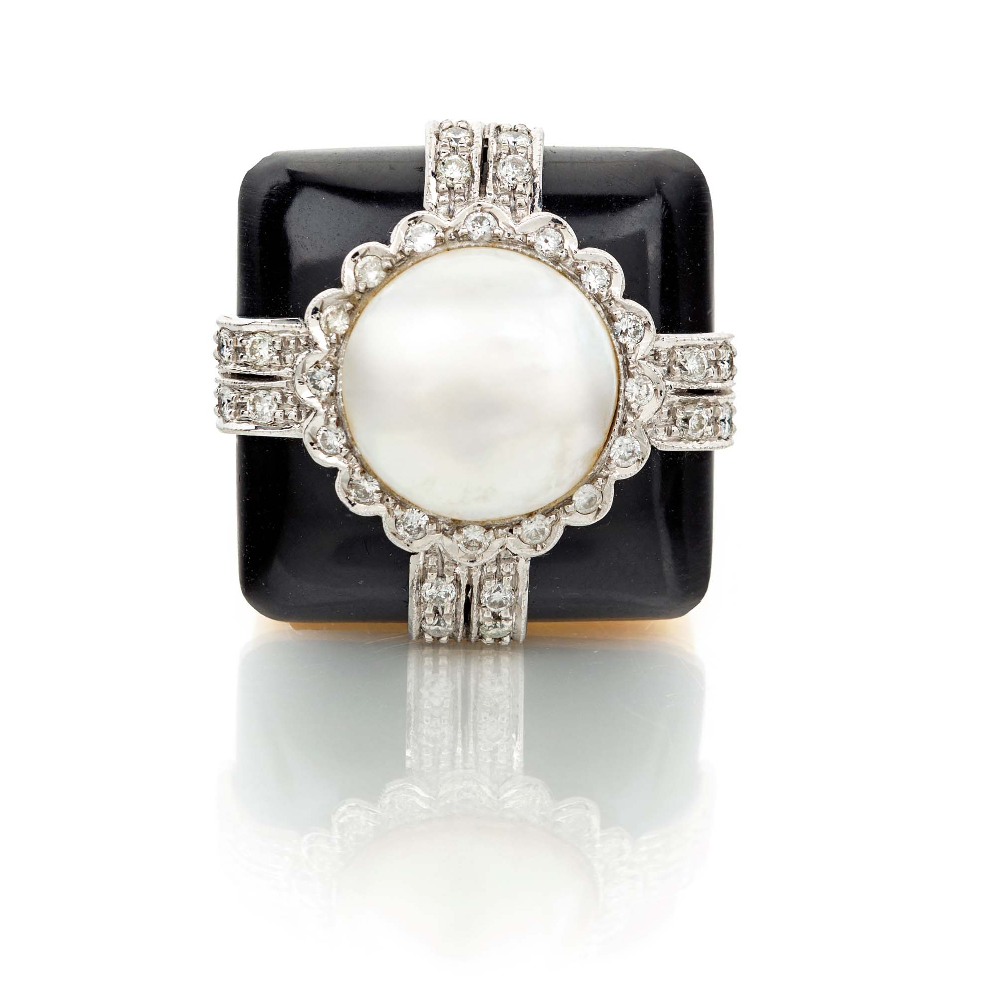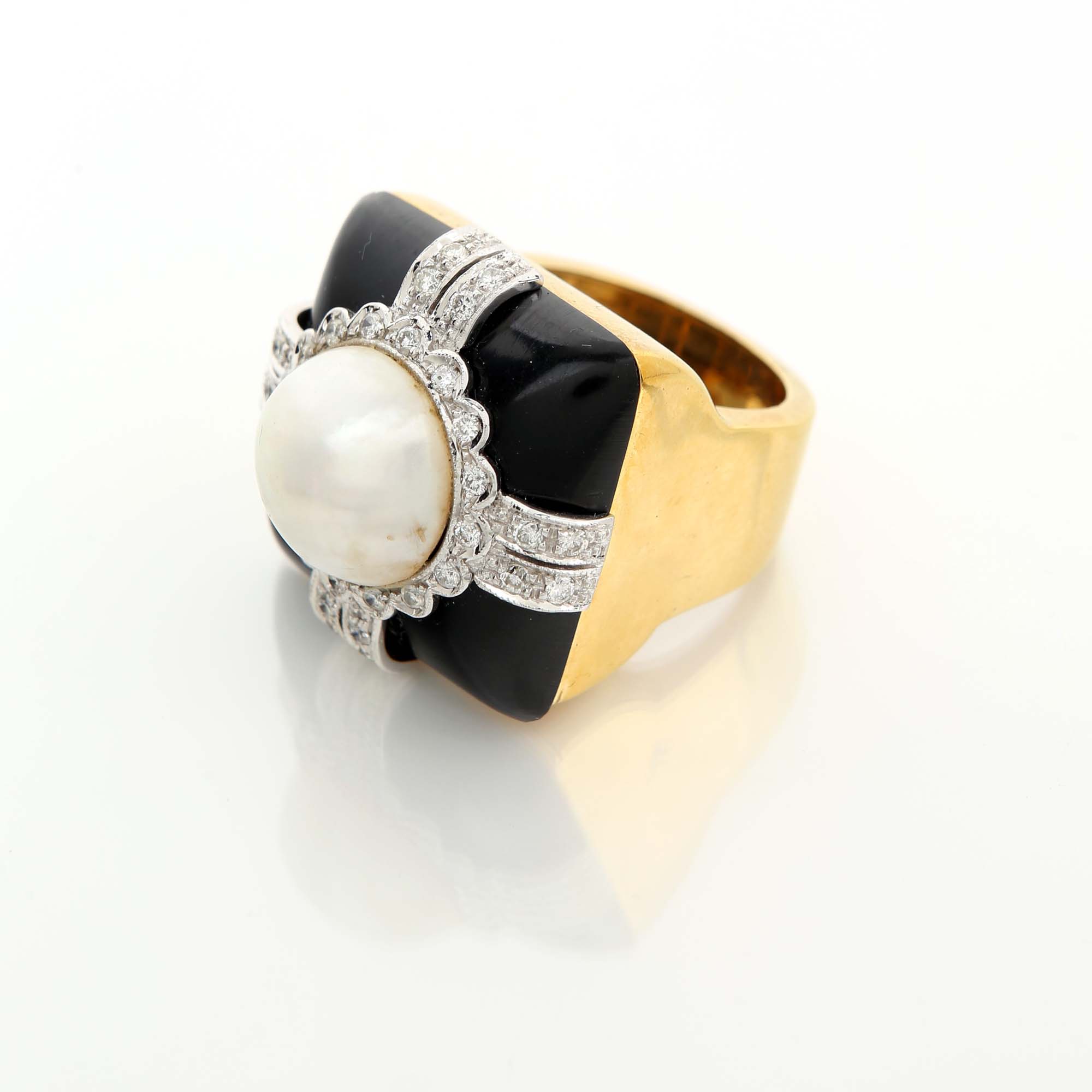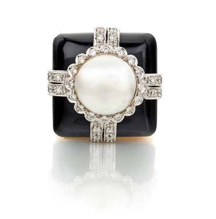 Anello in oro perla mabè, onice e brillanti Oro giallo 750/000. Peso...
