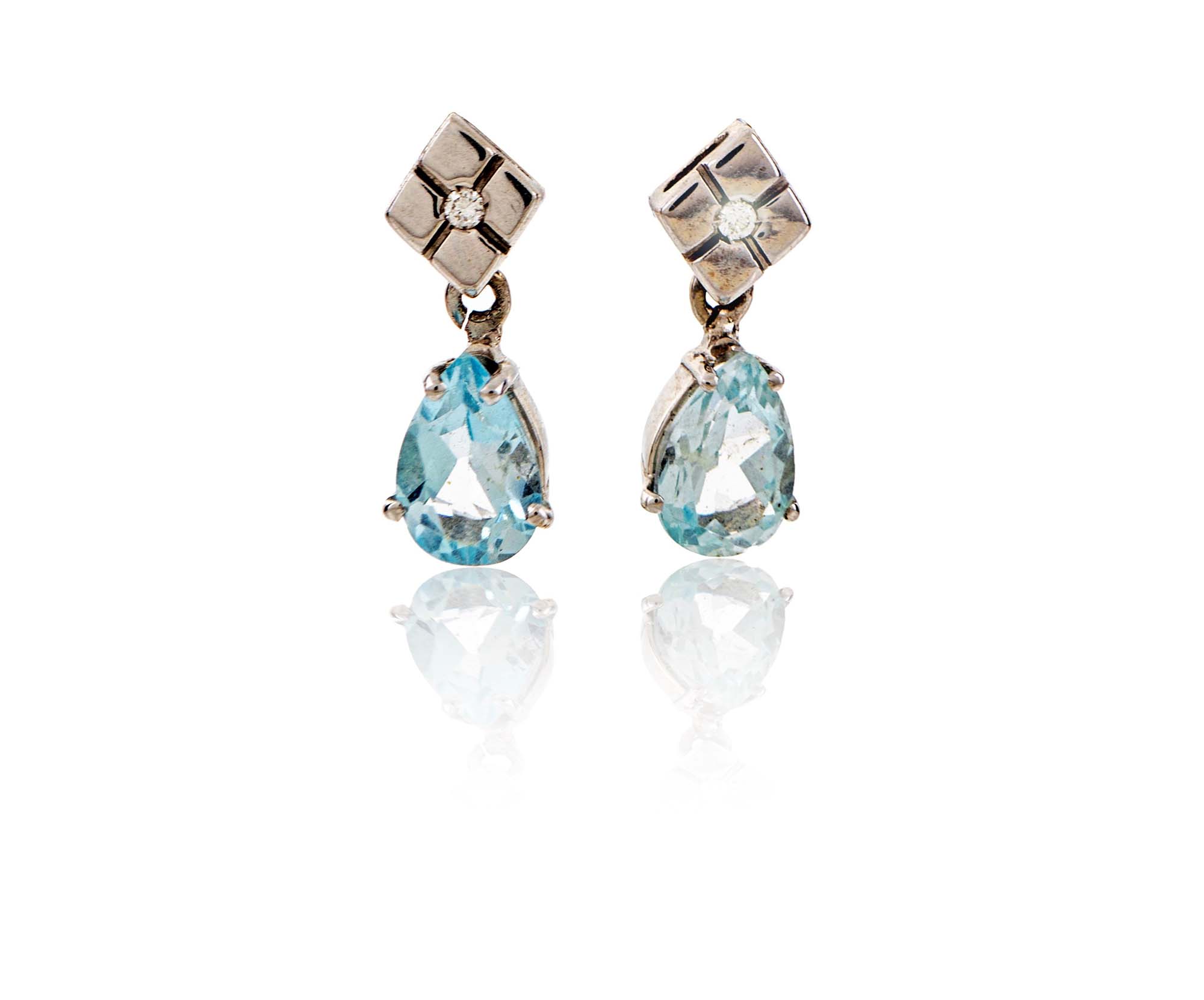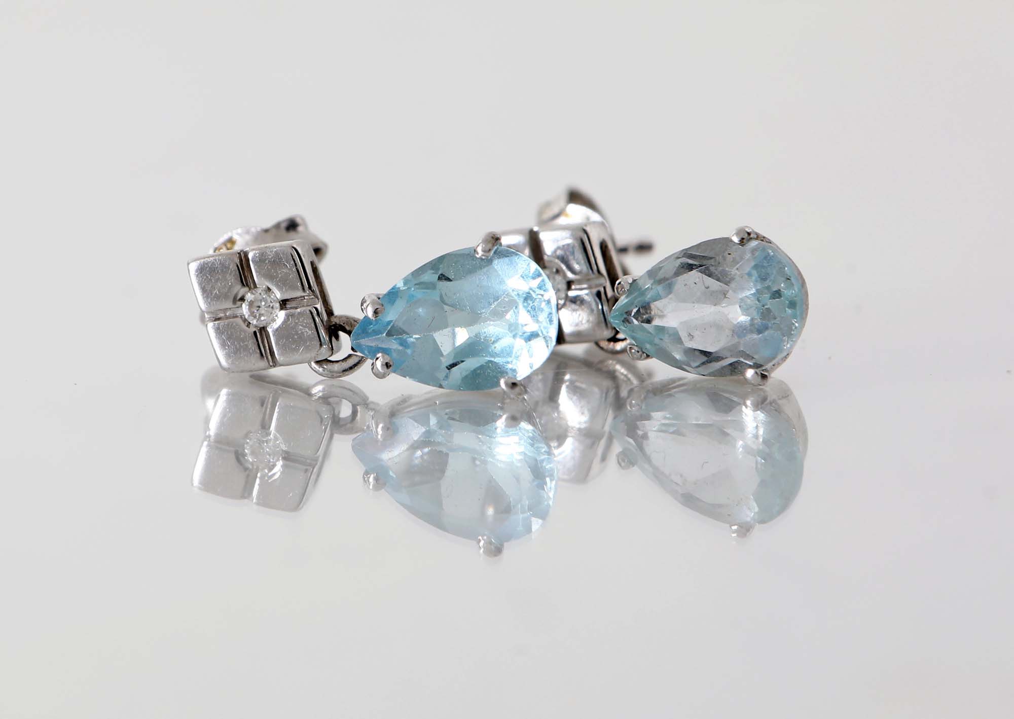 Lot 198 | Coppia di orecchini in oro, brillanti e acquamarine Oro bianco 750/000. Peso...