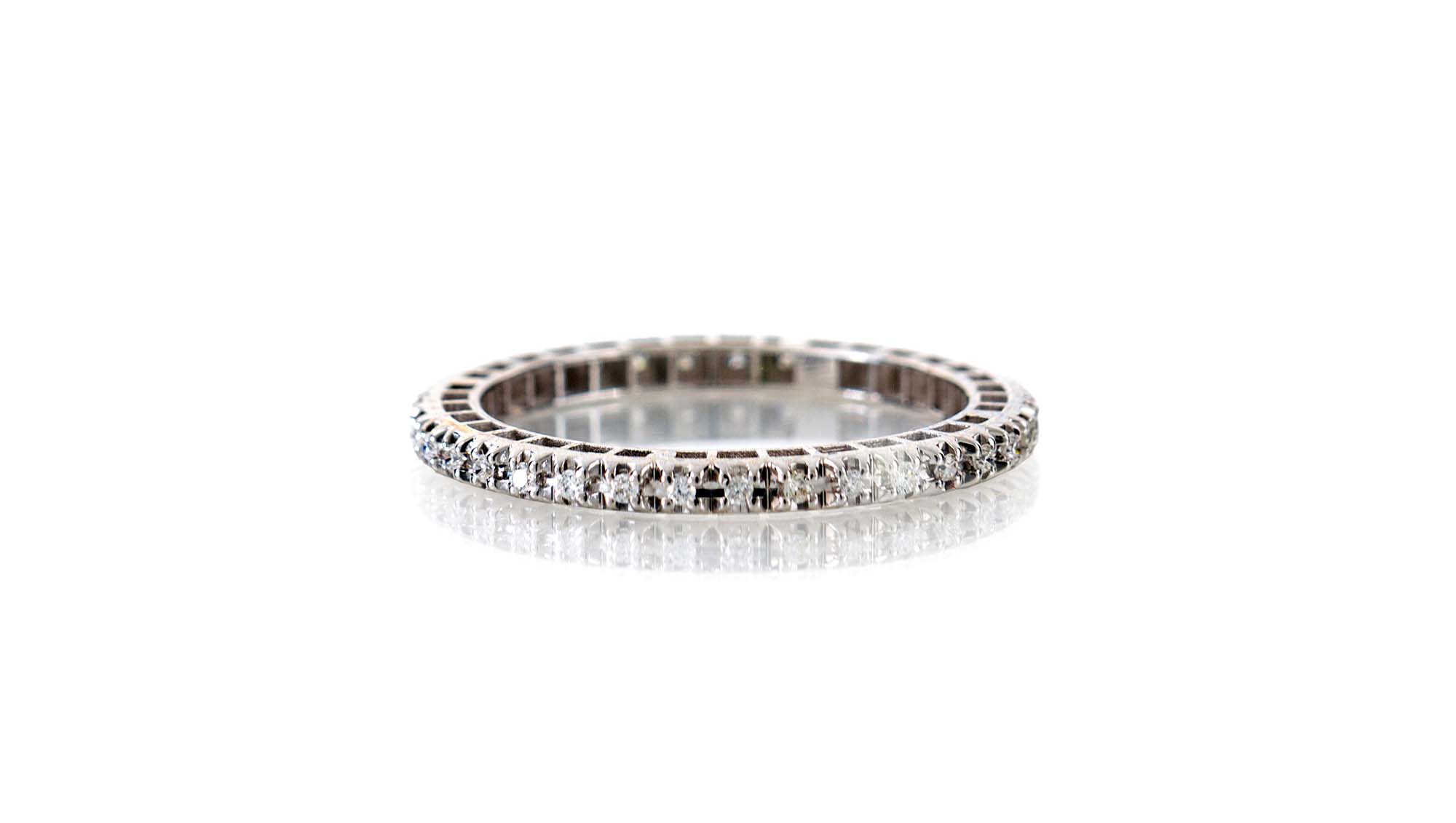 Riviera eternelle in oro e brillanti. Oro bianco 750/000. Peso complessivo gr. 1,50 Misura 14