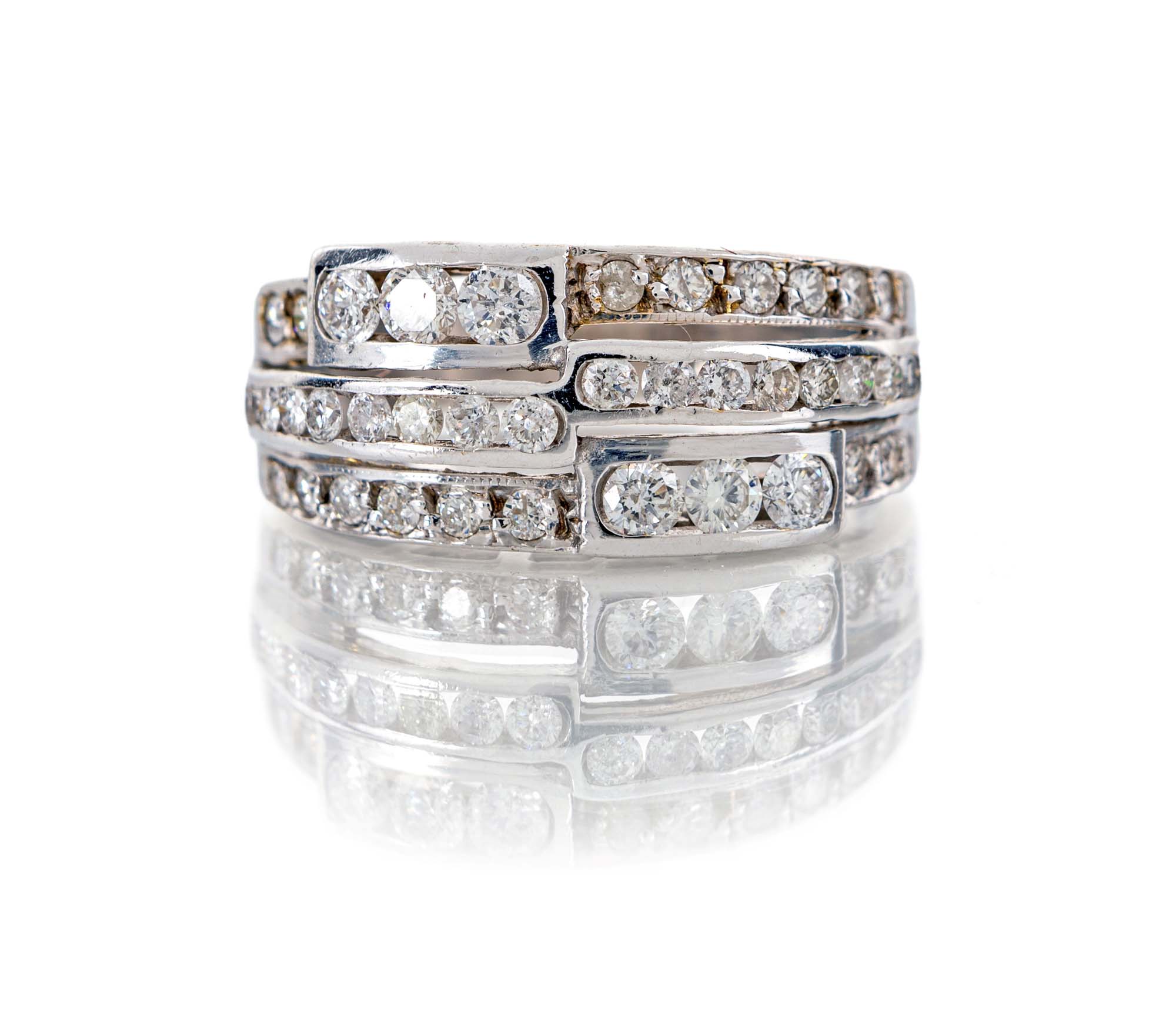 Anello a fascia in oro e brillanti Oro bianco 750/000. Diamanti in taglio...