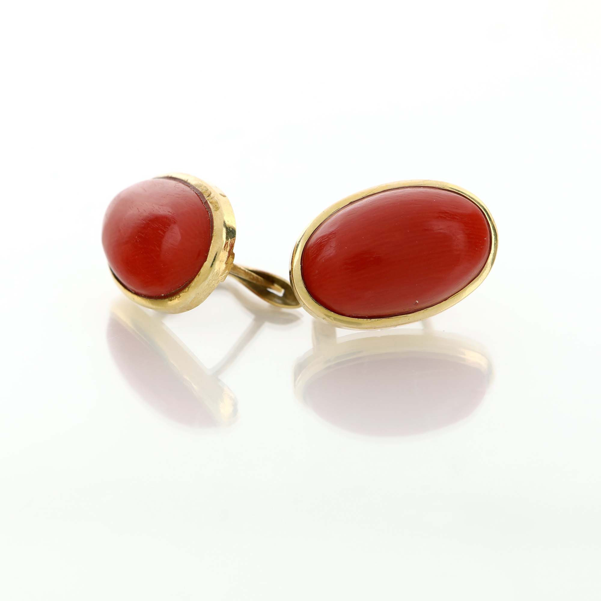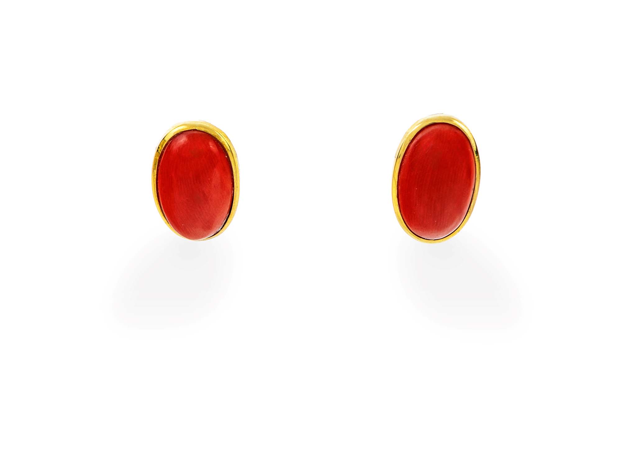 Coppia di orecchini in oro e corallo Oro giallo 750/000. Peso complessivo gr....