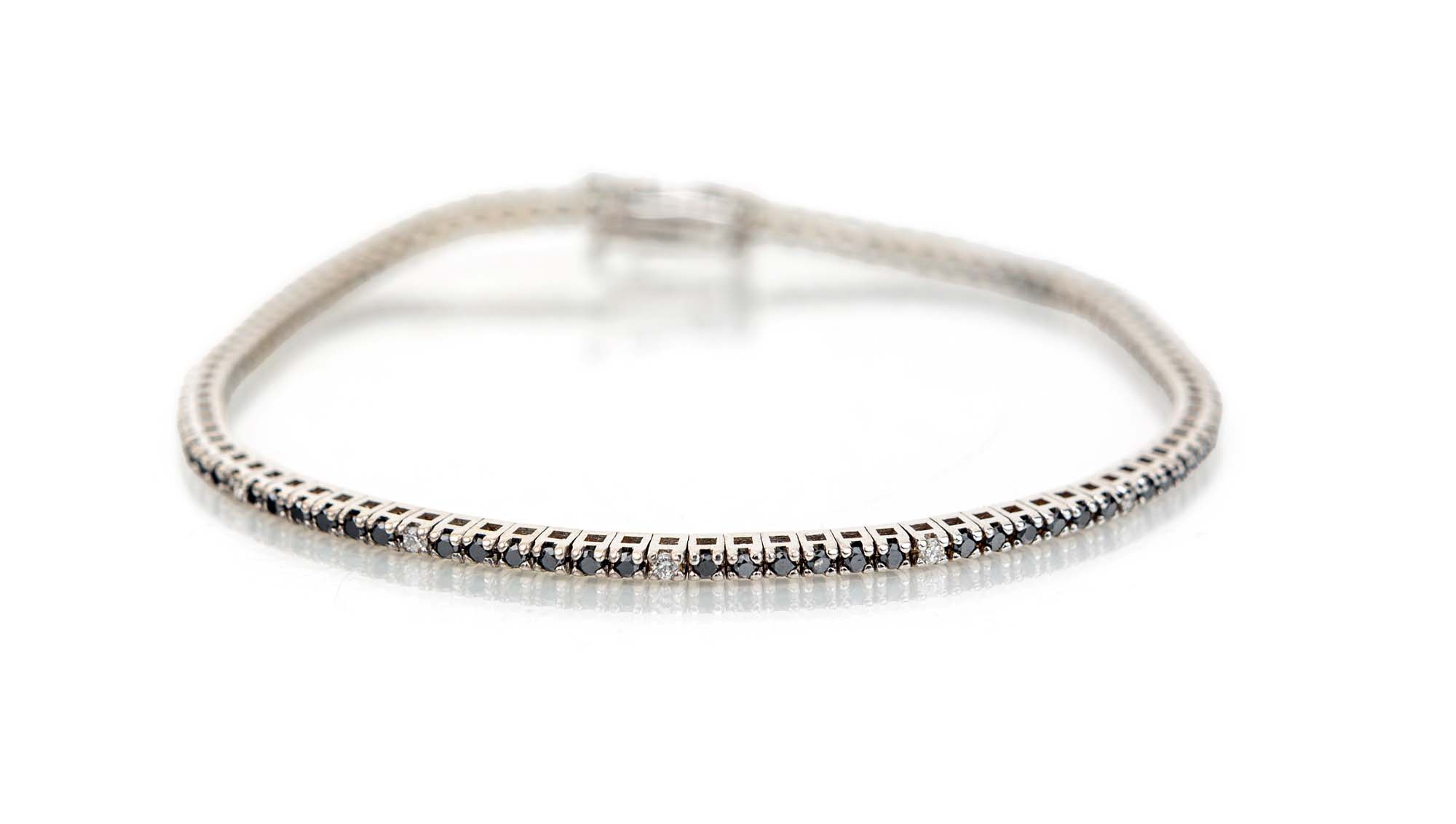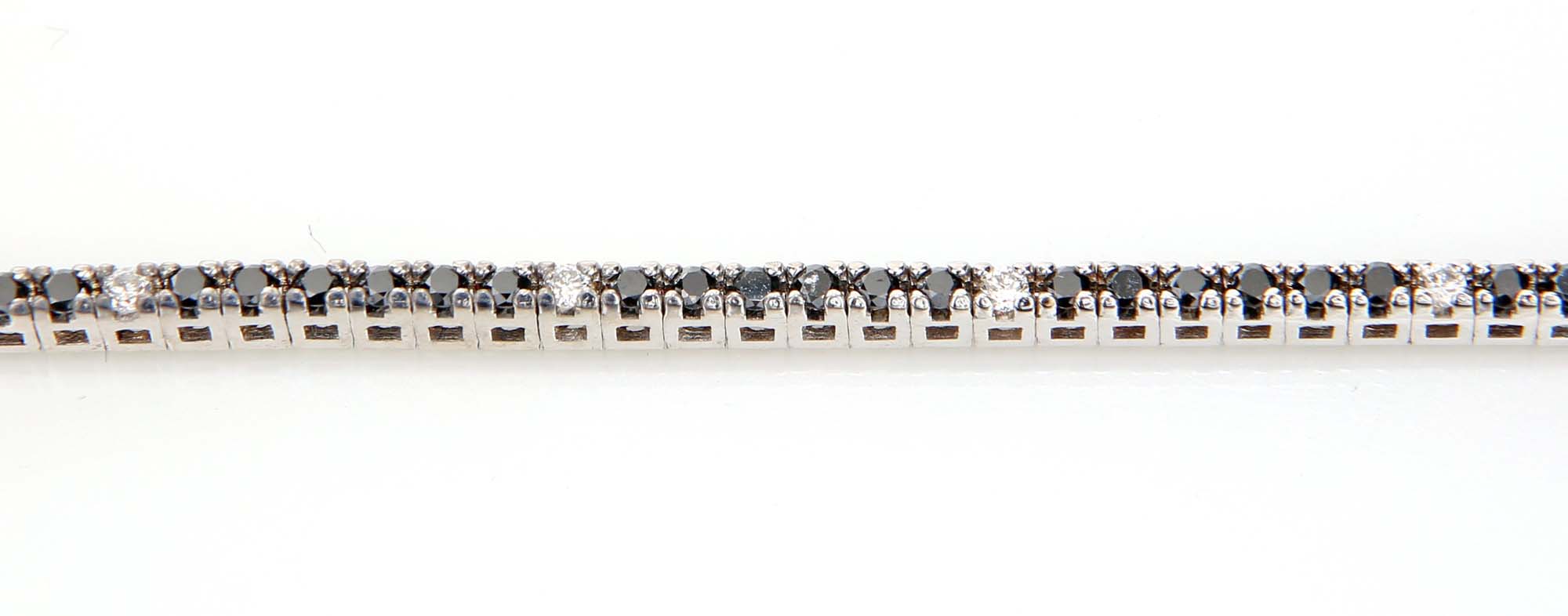 Bracciale tennis in oro, brillanti neri e brillanti Oro bianco 750/000. Diamanti neri e incolore ct. 1 ca. Peso complessivo gr. 6 Lunghezza cm 18
