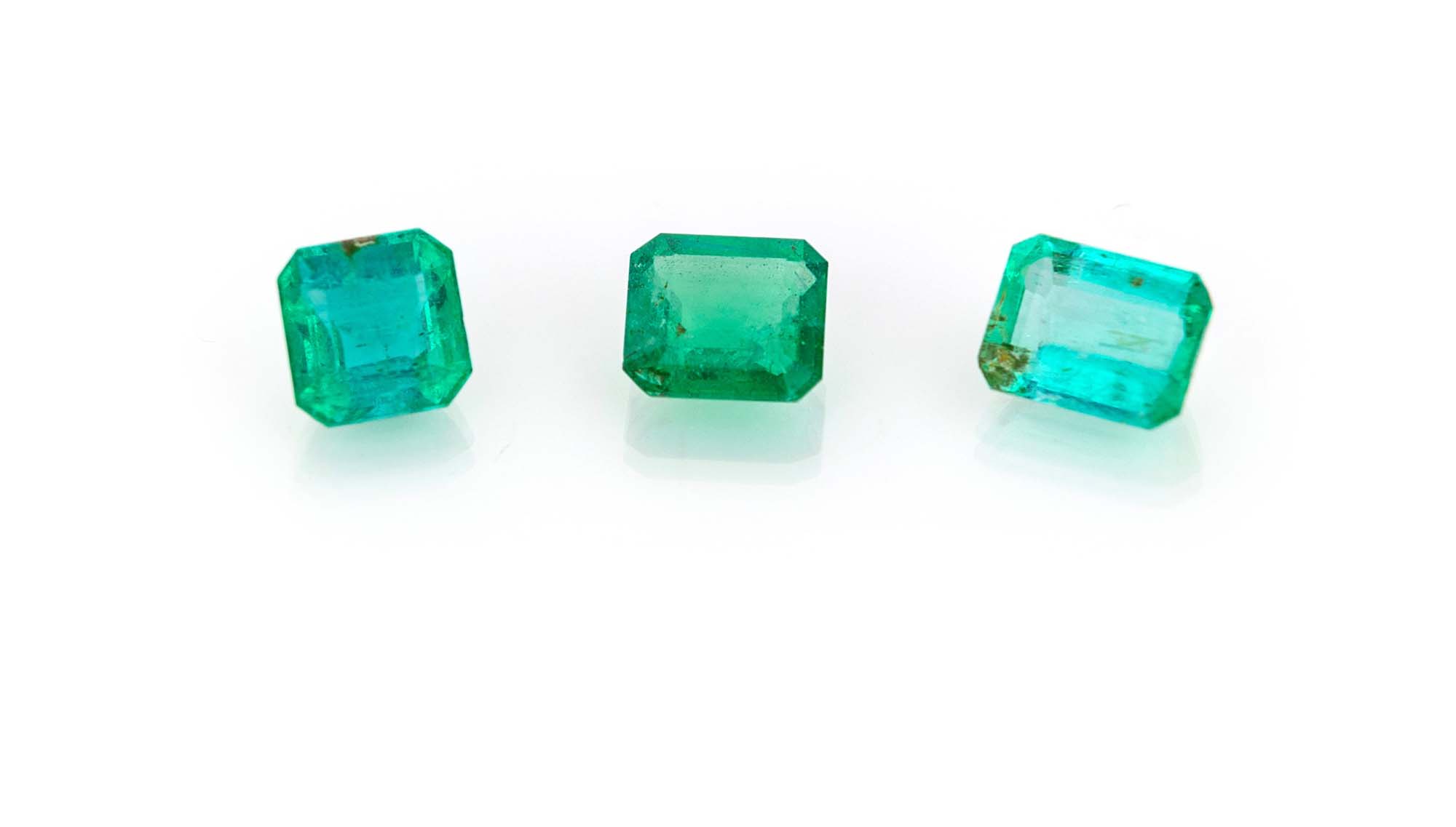 Gruppo di 3 smeraldi Smeraldi naturali in taglio gradino ct. 2,13 complessivi...