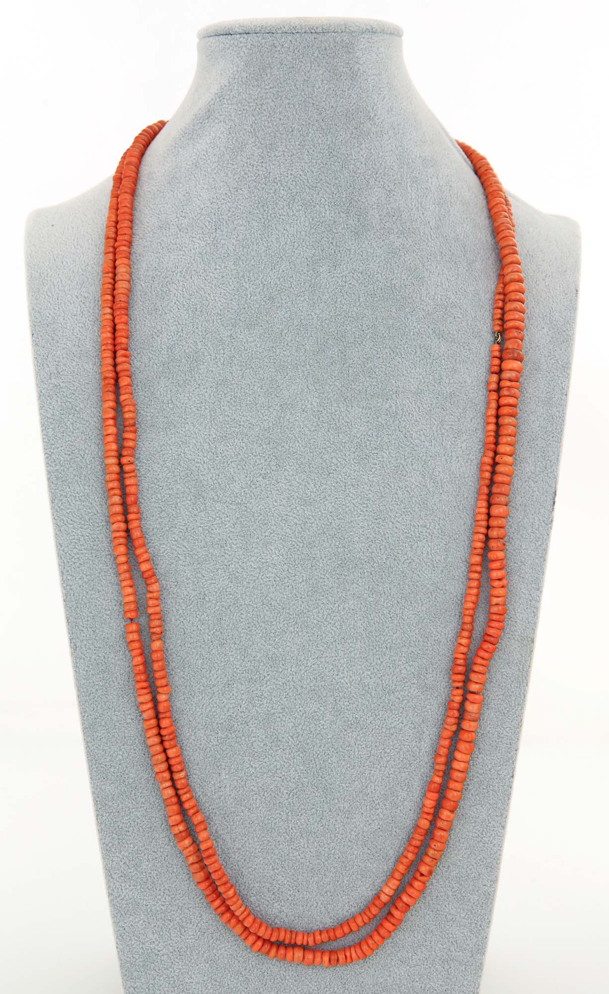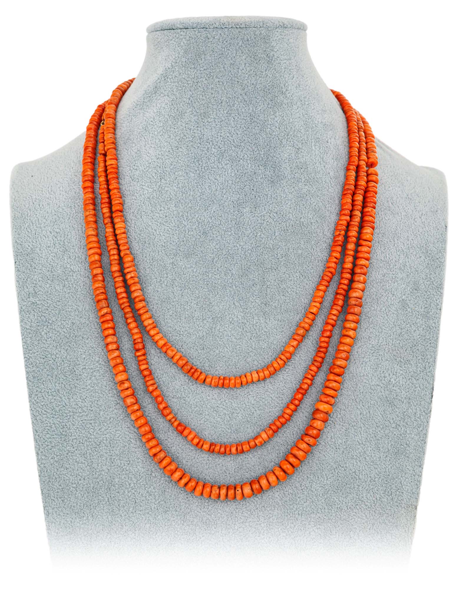 Lunga collana in corallo Corallo in taglio barilotto liscio da mm. 4 a mm. 8....