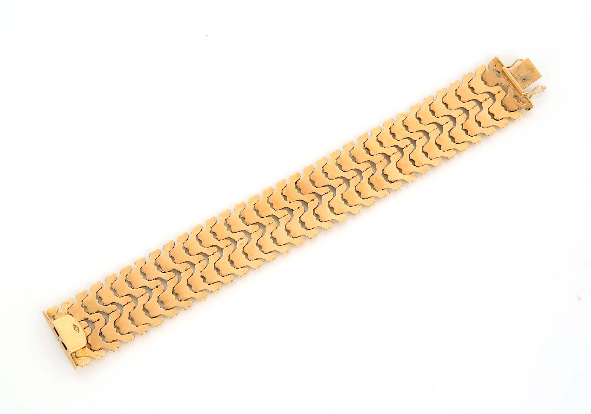 Bracciale in oro Oro giallo 750/000. Peso complessivo gr. 41,20 Lunghezza cm 18, altezza cm 2,5