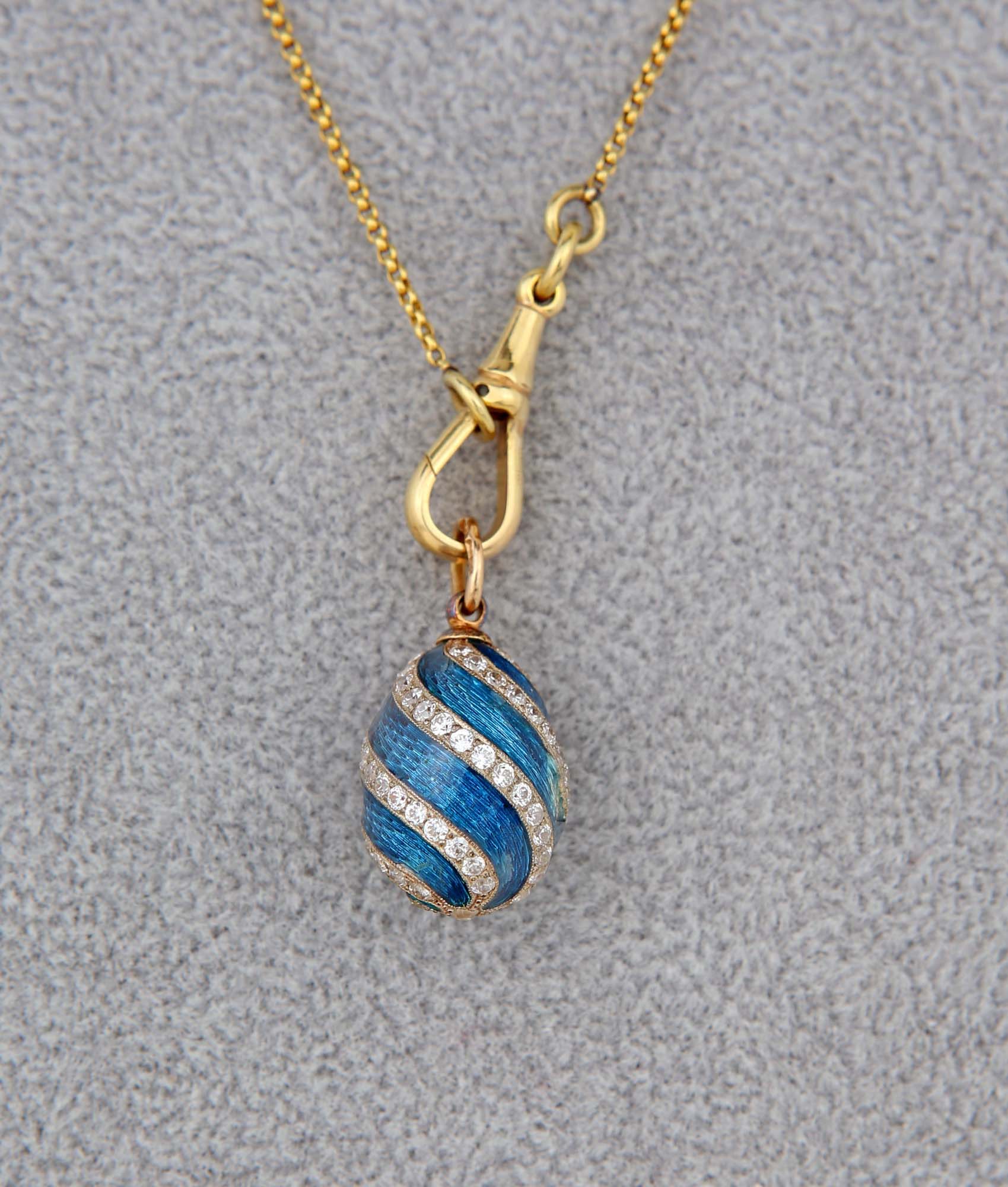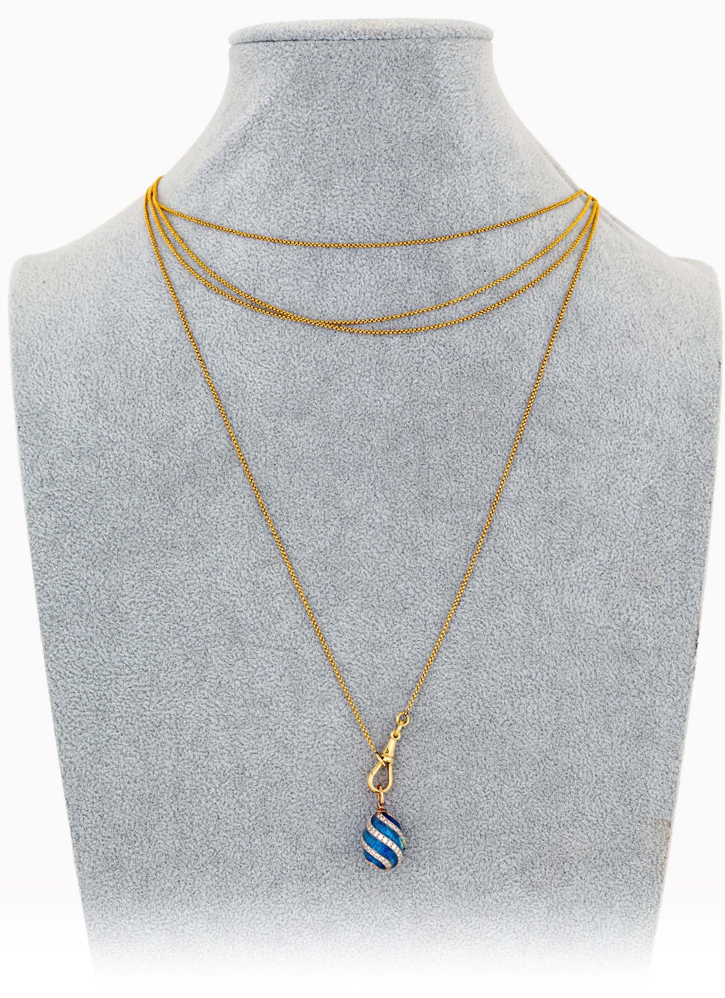 Lunga collana maglia in oro con pendente ad ovetto in argento e smalti Oro...