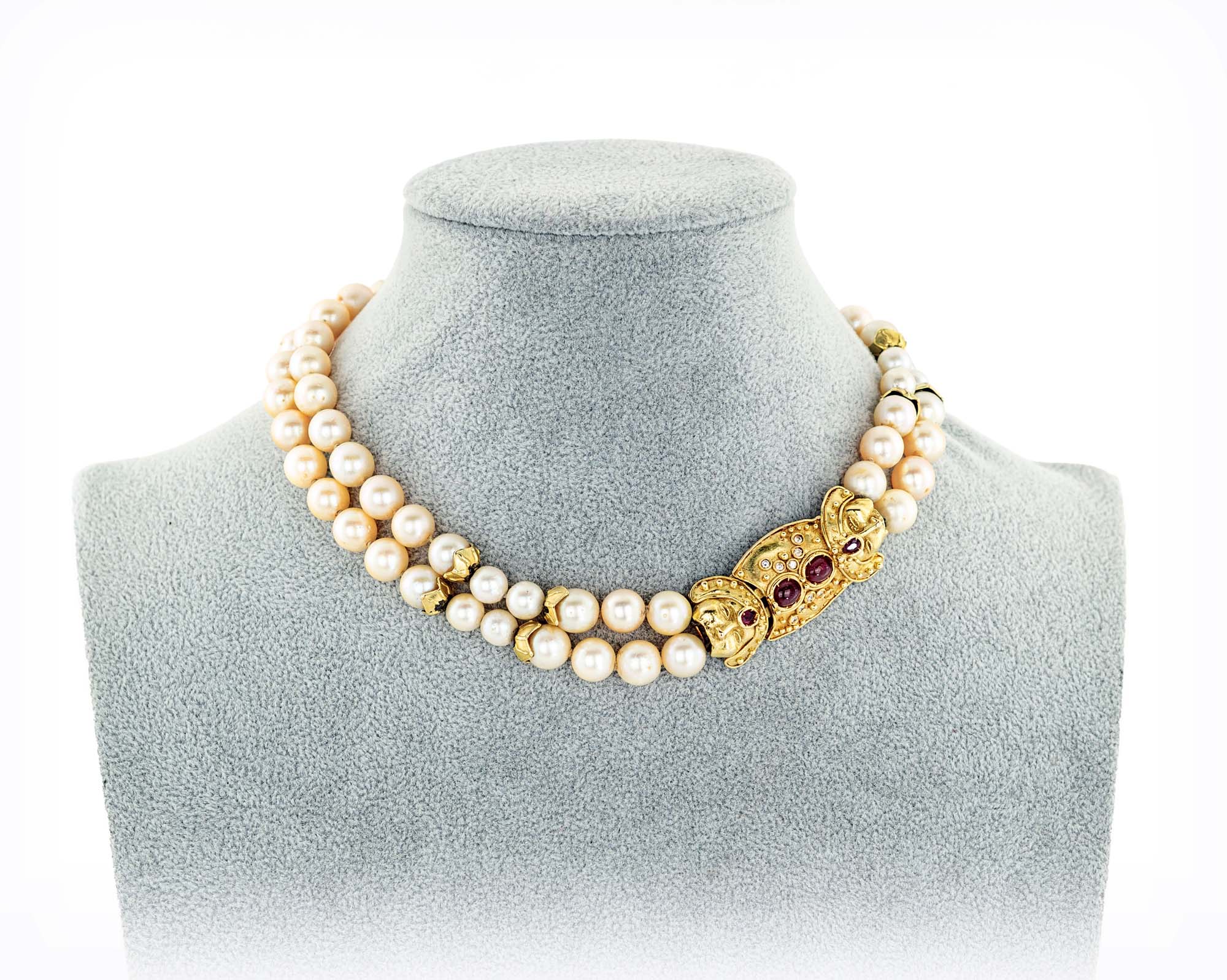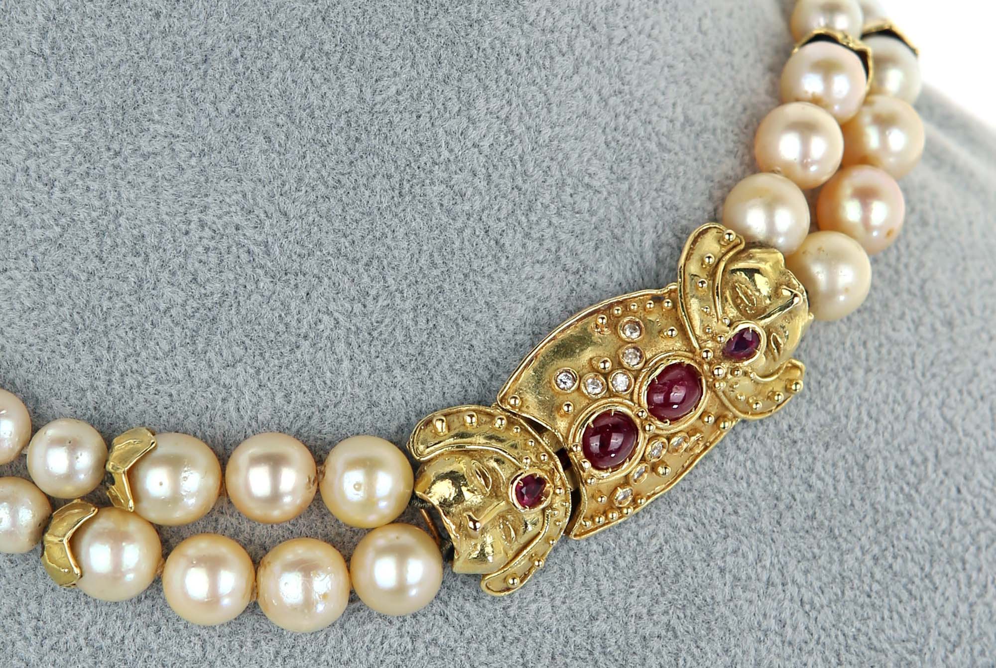 Collana di perle coltivate, oro e brillante Oro giallo 750/000. Perle...