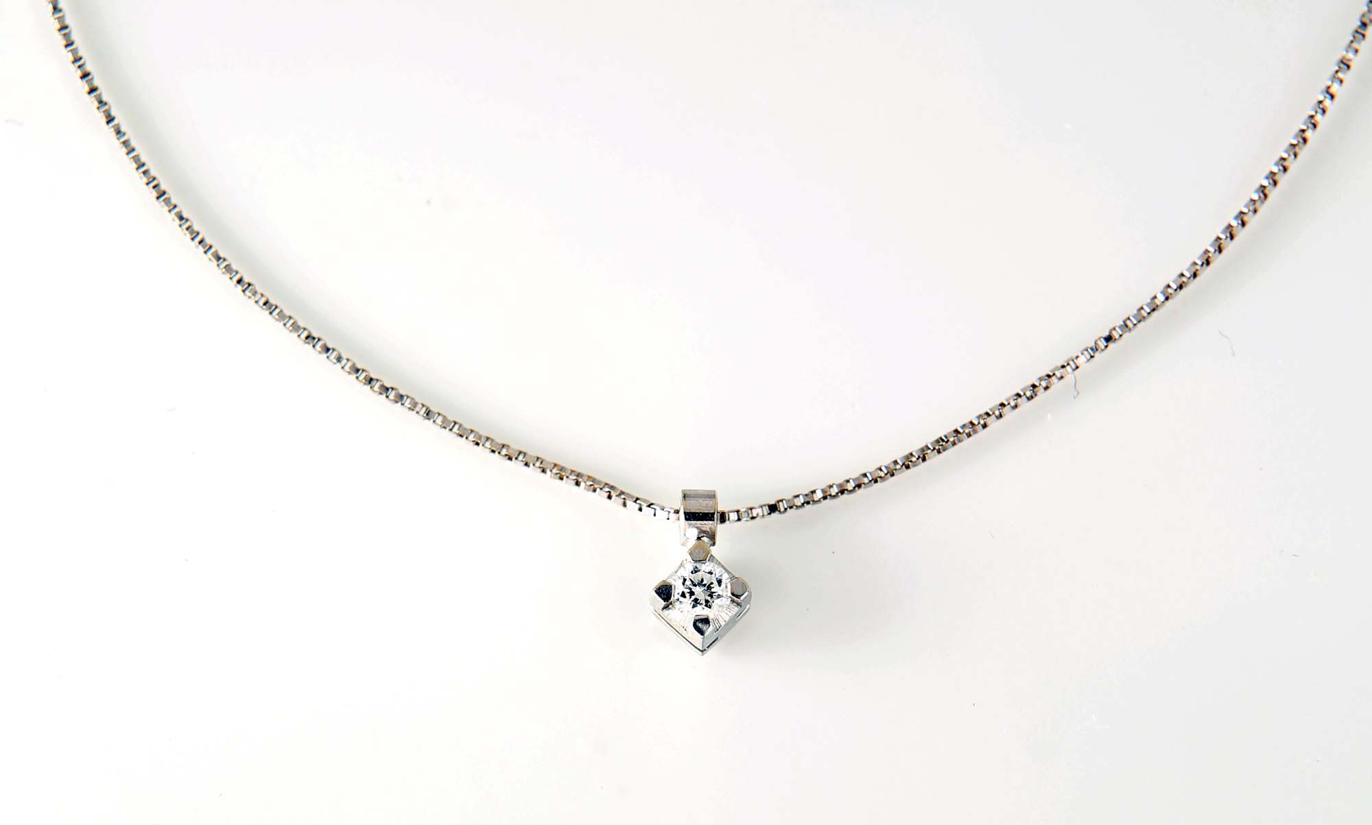 Pendente punto luce in oro e brillante Oro bianco 750/000. Diamante in taglio...