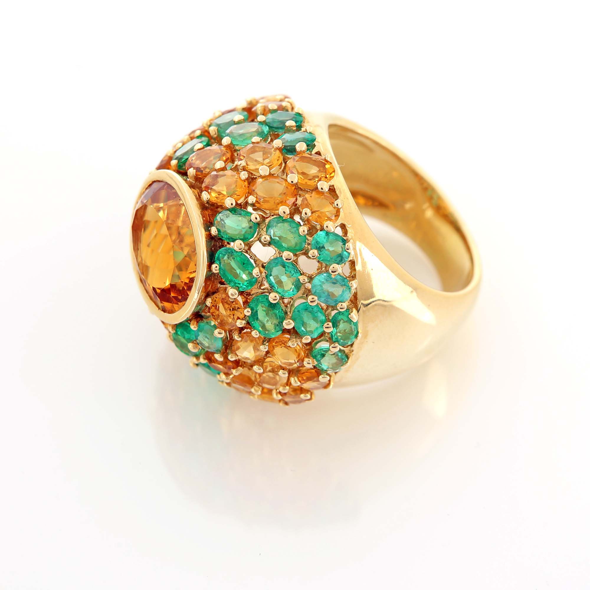 Anello in oro, smeraldi e quarzi citrini Oro giallo 750/000. Smeraldi in taglio ovale ct. 3, quarzi citrini ct. 7. Peso complessivo gr. 22,10 Misura 12