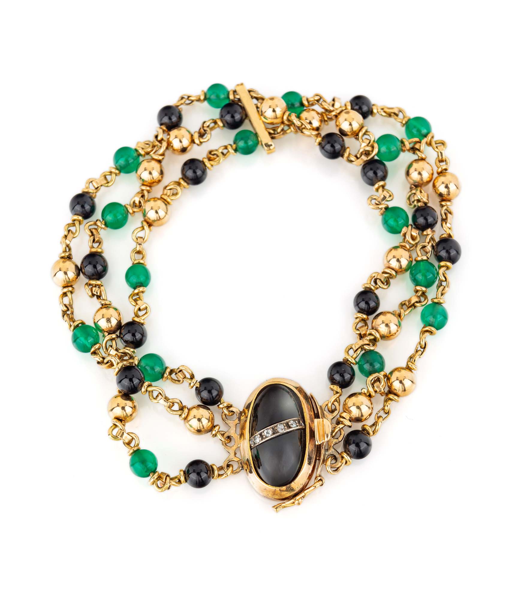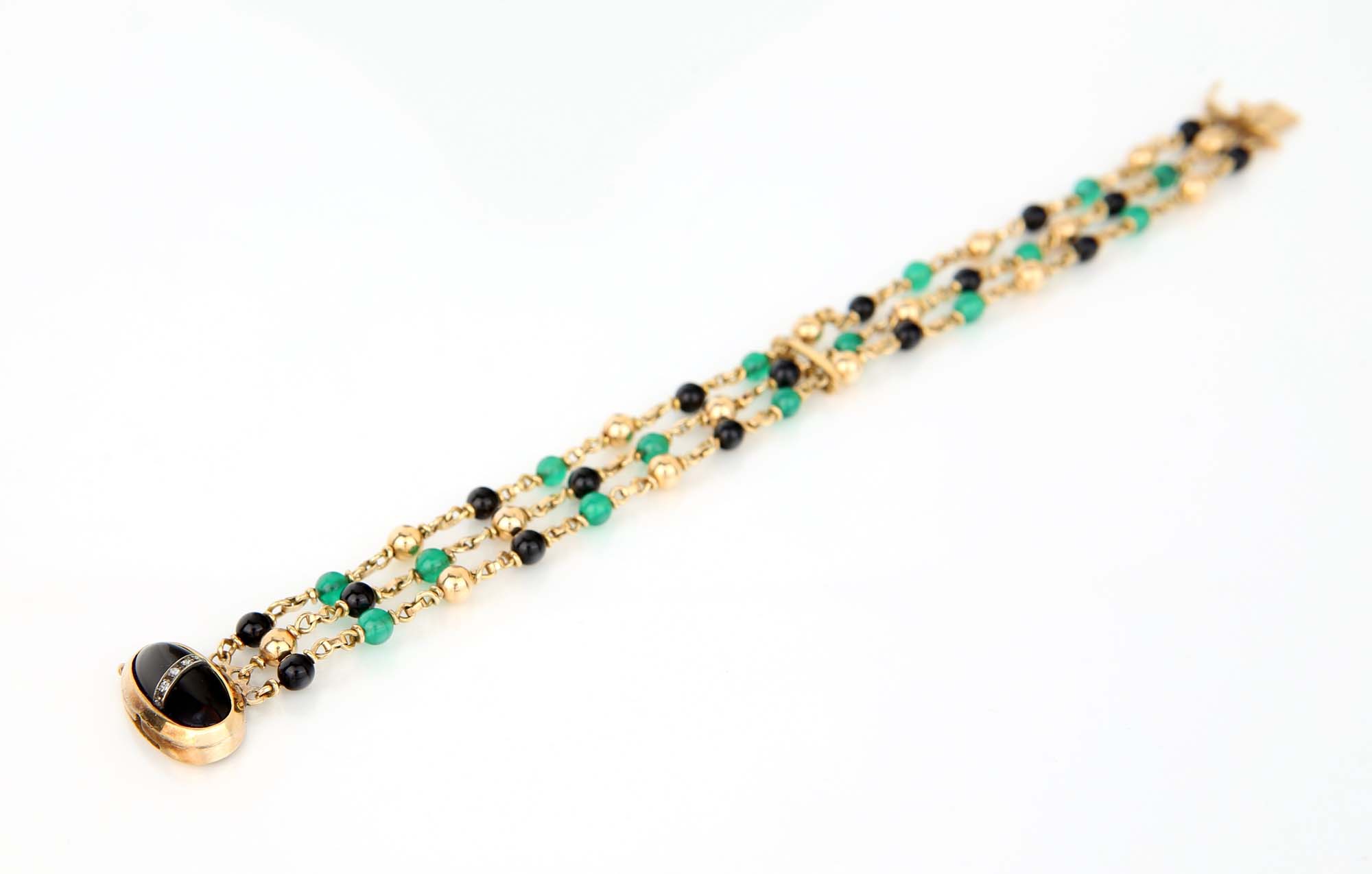 Bracciale in oro, onice, crisoprasio e diamanti Oro giallo 750/000. Peso...