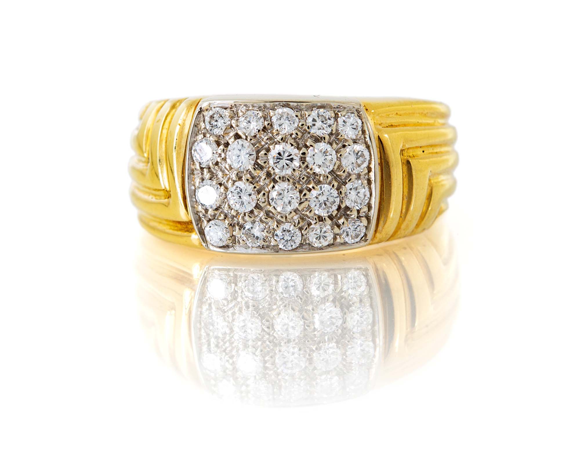 Anello a fascia in oro e brillanti Oro bianco e giallo 750/000. Peso complessivo gr. 5,90 Misura 12